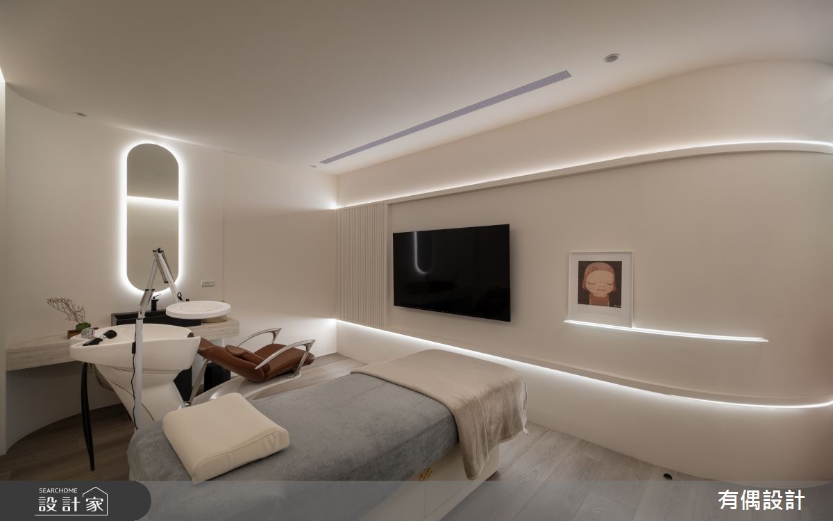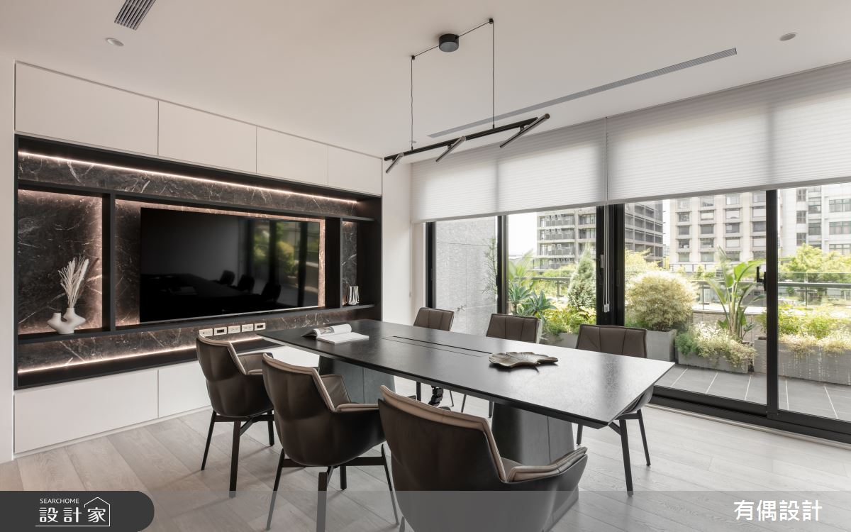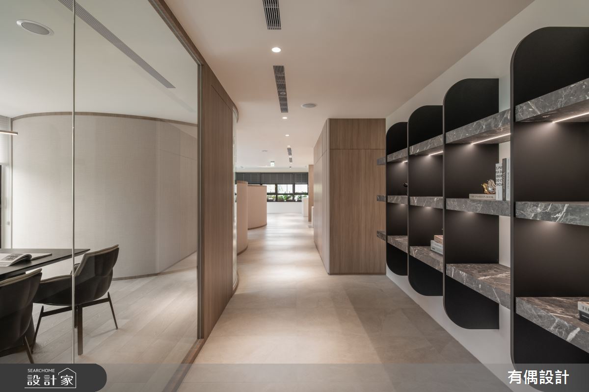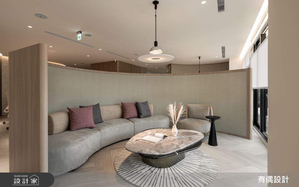 由有偶設計精心規劃的39坪商業空間,因應業主需求,設計師運用混搭風作為主軸,搭配建材PVC地板,打造精緻品味的空間氛圍。