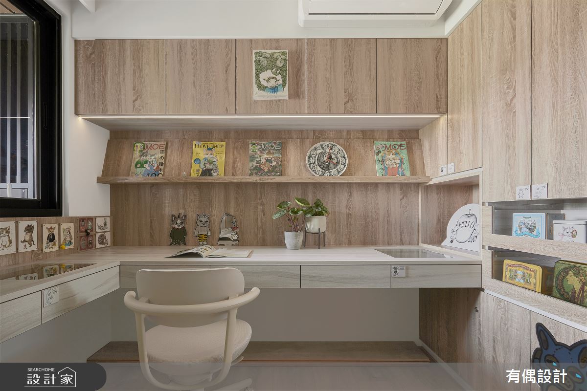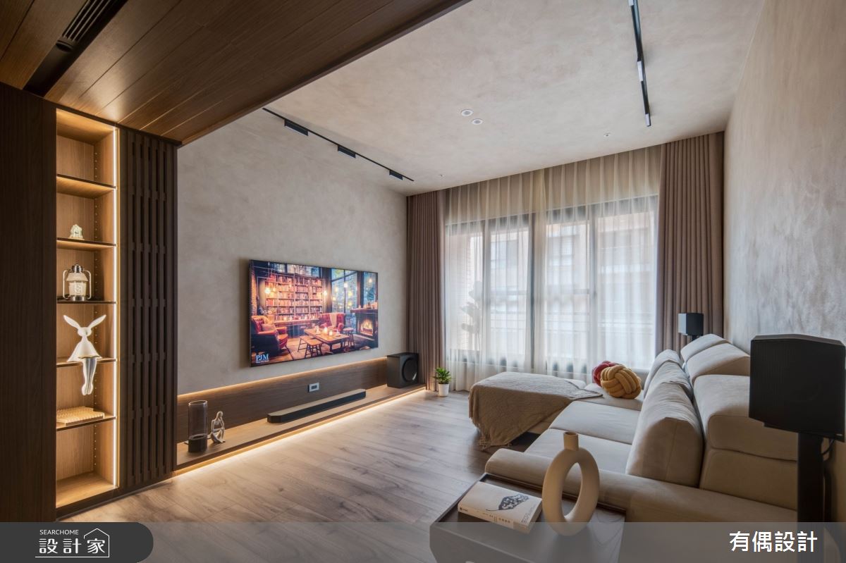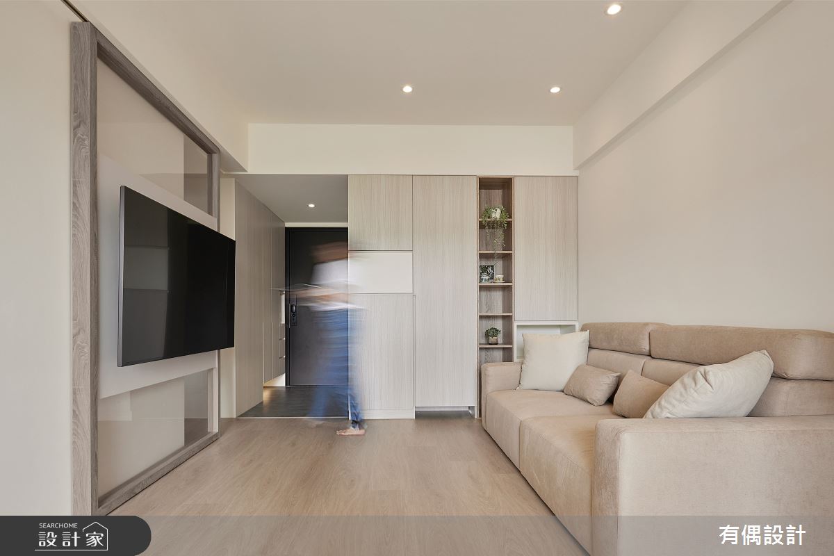 本案為有偶設計的23坪現代風新成屋(5年以下)設計作品,格局為單層三房的居住空間。全室建材的搭配,應用藝術漆,展現溫馨的居家氛圍。