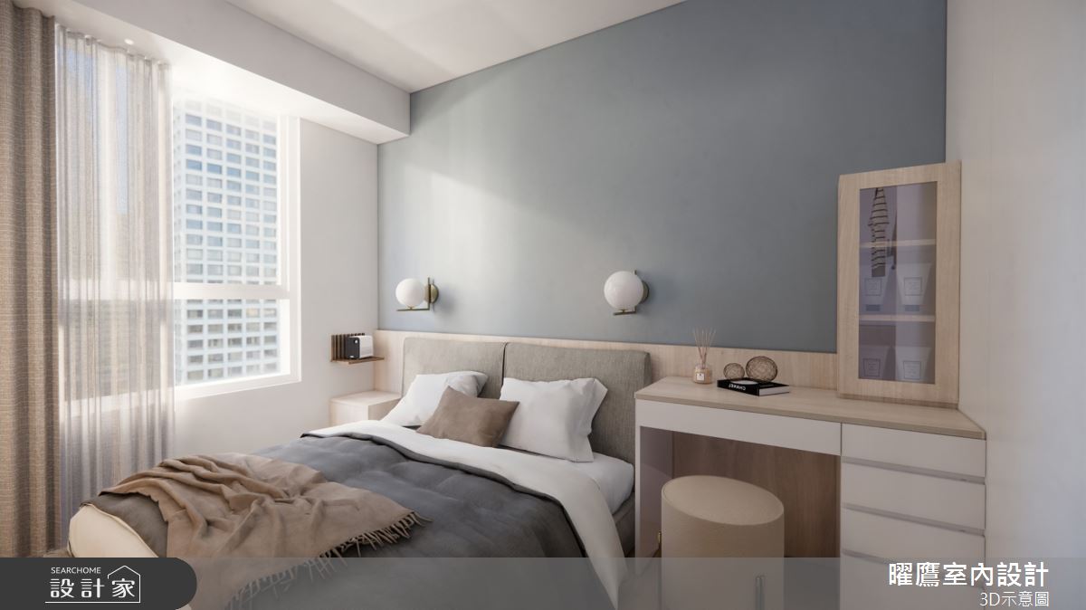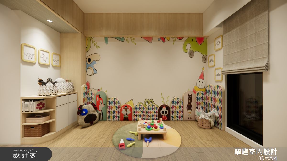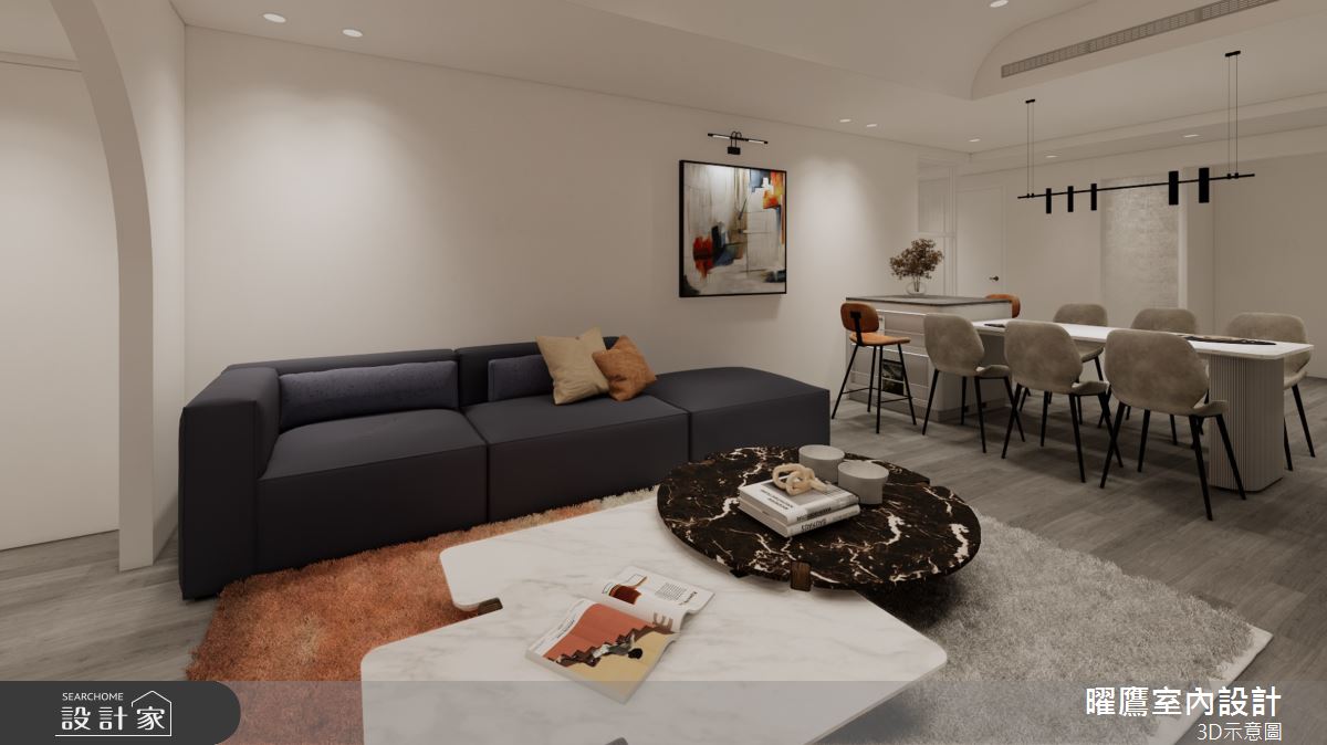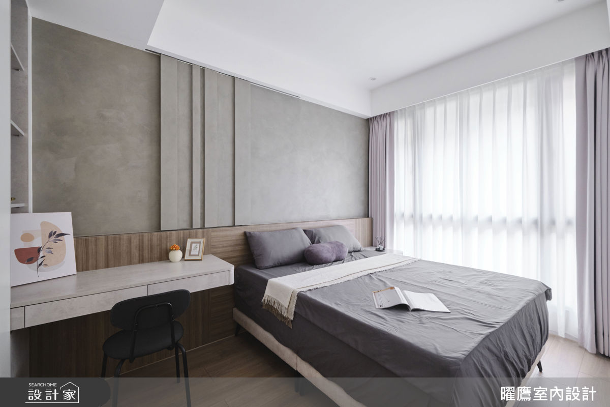 曜鷹室內設計以乳膠漆、烤玻、木作貼皮、系統板材、繃布的搭配應用,呈現現代北歐風居家氛圍,將此間26坪、三房、單層打造成舒適愜意的家庭空間,完成全家人的夢想之居。