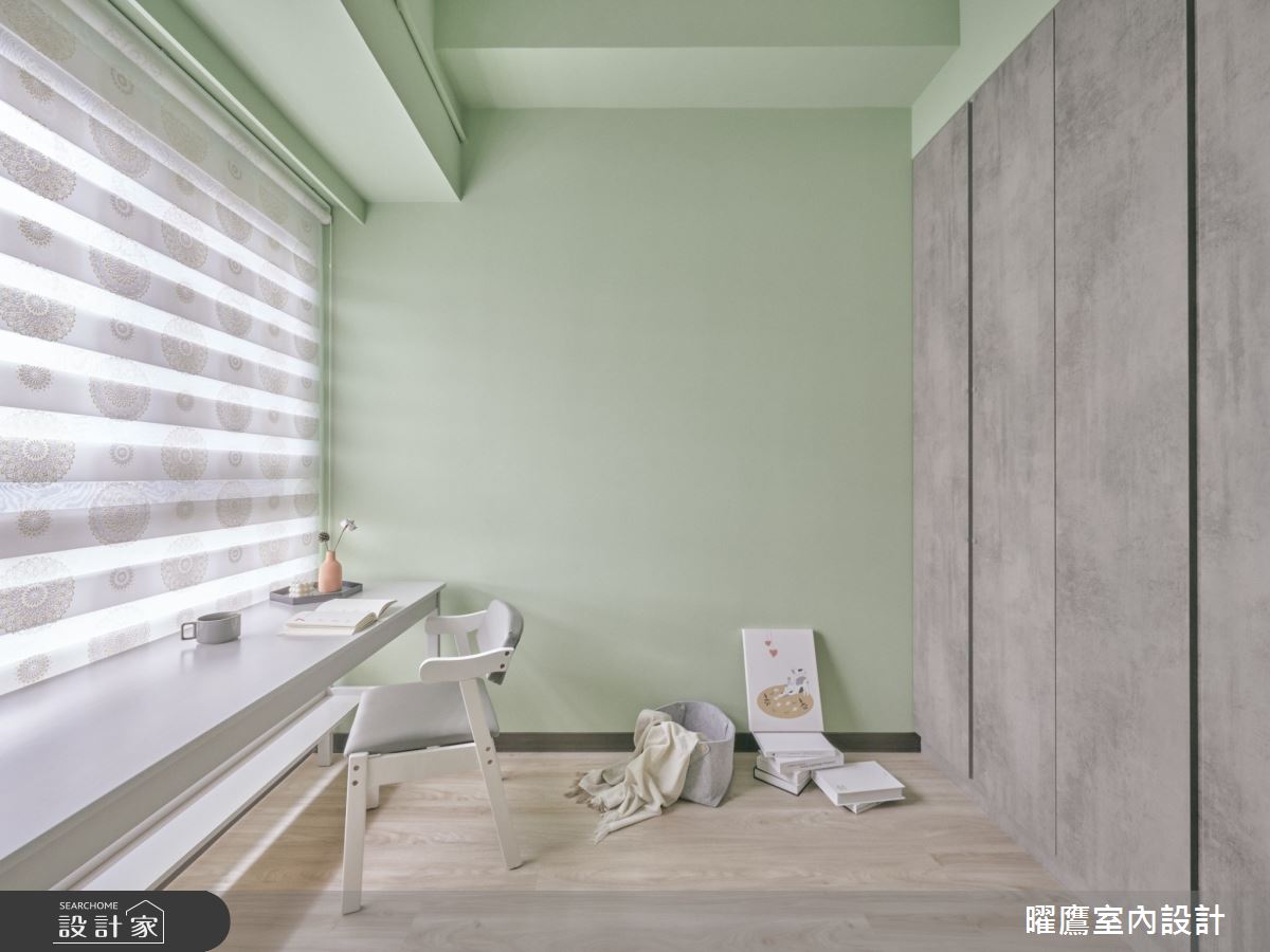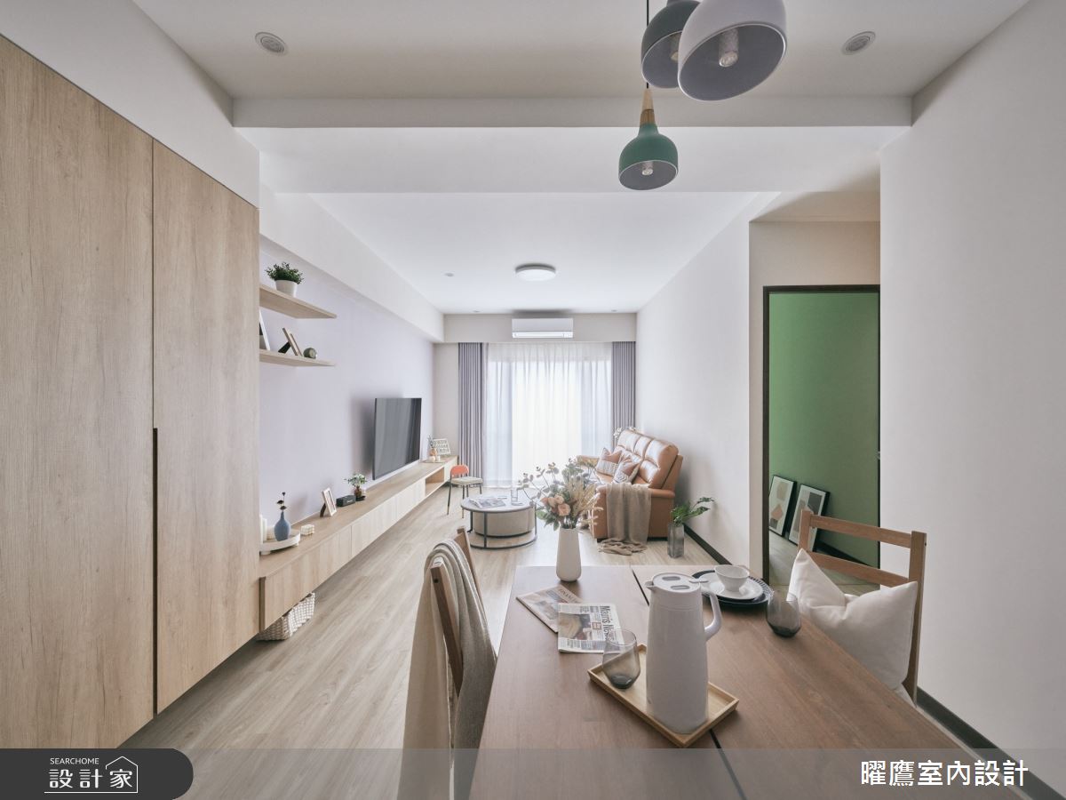 曜鷹室內設計以油漆、乳膠漆、超耐磨木地板、噴漆、造型玻璃、系統櫃、木作門的搭配應用,呈現北歐風居家氛圍,將此間22坪、三房、單層、新古屋(10年以下)打造成舒適愜意的家庭空間,完成2位大人全家人的夢想之居。