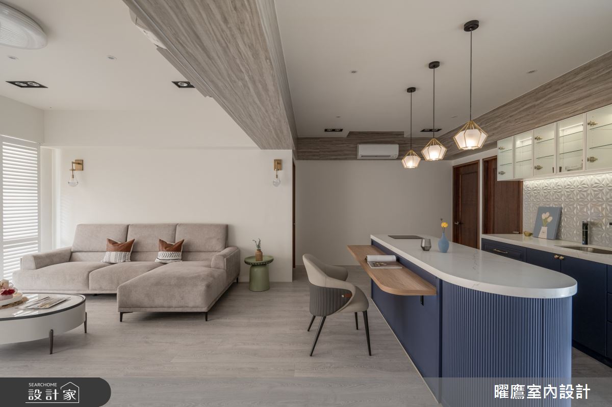 來自曜鷹室內設計的39坪美式風住宅案,屋主一家人共有2位大人,是一間單層老屋(16~30年)的四房格局,設計師藉由建材以乳膠漆、六角磚/蜂巢磚、花磚、壁紙、水泥漆、超耐磨木地板、木紋磚、鐵件、烤玻、木作貼皮、系統板材、大理石、木百葉、人造石、軌道燈、線板的搭配應用,實現一家人的理想生活。