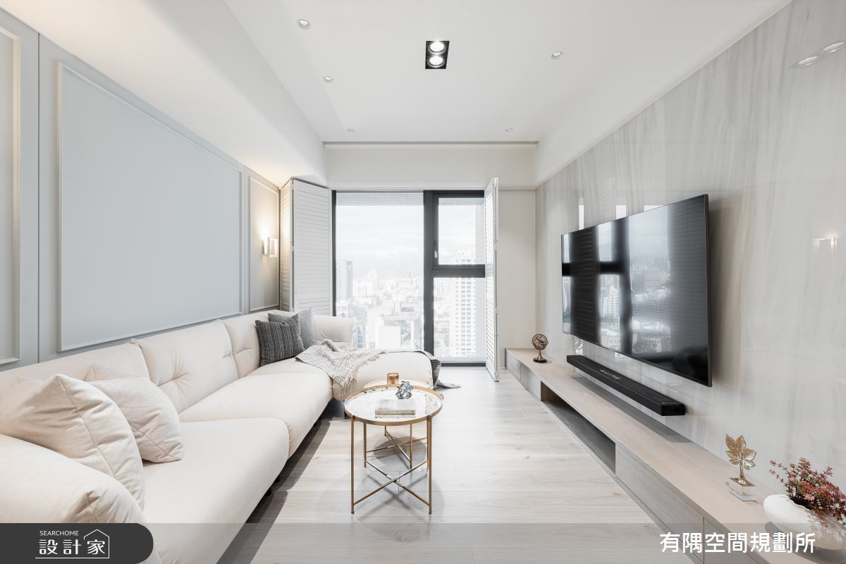 來自有隅空間規劃所的41坪現代美式風住宅案,屋主一家人共有1位大人,是一間單層預售屋的兩房格局,設計師藉由建材以乳膠漆、烤漆、木作貼皮、系統板材、線板、木百葉、鐵件、超耐磨木地板、灰鏡、小冰柱玻璃、薄板、琺瑯板的搭配應用,實現一家人的理想生活。