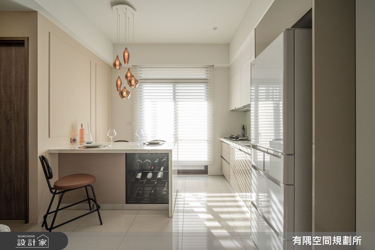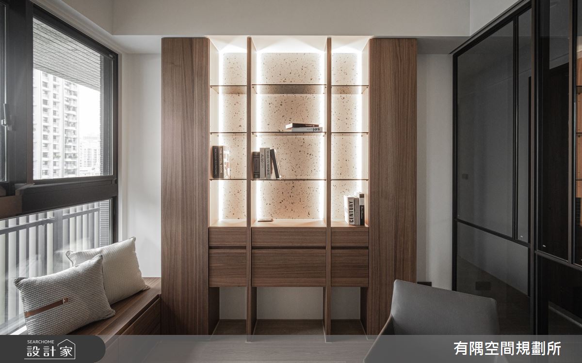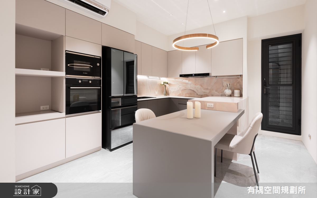 本案為有隅空間規劃所的37坪現代風老屋(41~50年)設計作品,格局為透天別墅兩房的居住空間。居住成員包含2位大人。全室建材的搭配,應用烤漆、樂土、木作貼皮、系統板材、鐵件、鍍鈦金屬、水波紋漆、抿石子、FENIX、薄板磁磚、長虹玻璃,展現溫馨的居家氛圍。