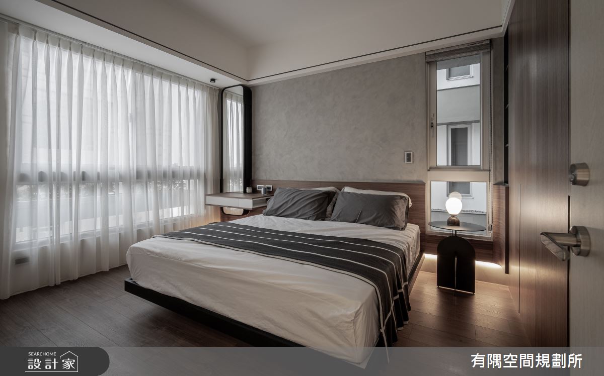 本案為有隅空間規劃所的46坪現代風毛胚屋設計作品,格局為單層兩房的居住空間。居住成員包含2位大人。全室建材的搭配,應用烤漆、樂土、木作貼皮、六角磚/蜂巢磚、不鏽鋼、鐵件、超耐磨木地板、薄板,展現溫馨的居家氛圍。