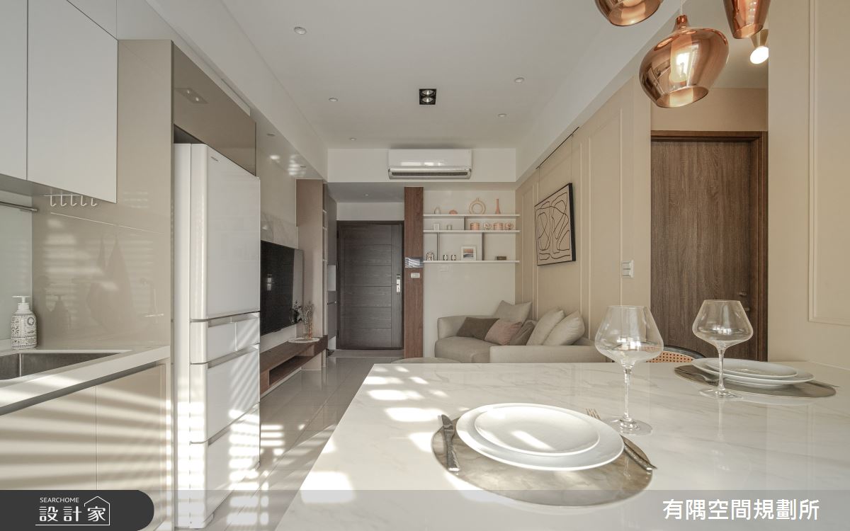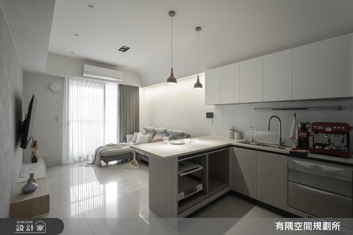 本案為有隅空間規劃所的24坪現代風新成屋(5年以下)設計作品,格局為單層兩房的居住空間。居住成員包含2位大人。全室建材的搭配,應用烤漆、木作貼皮、鐵件、薄板、金屬漆,展現溫馨的居家氛圍。