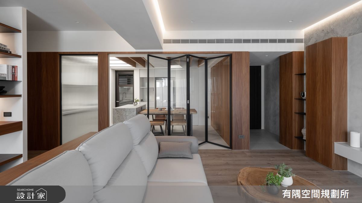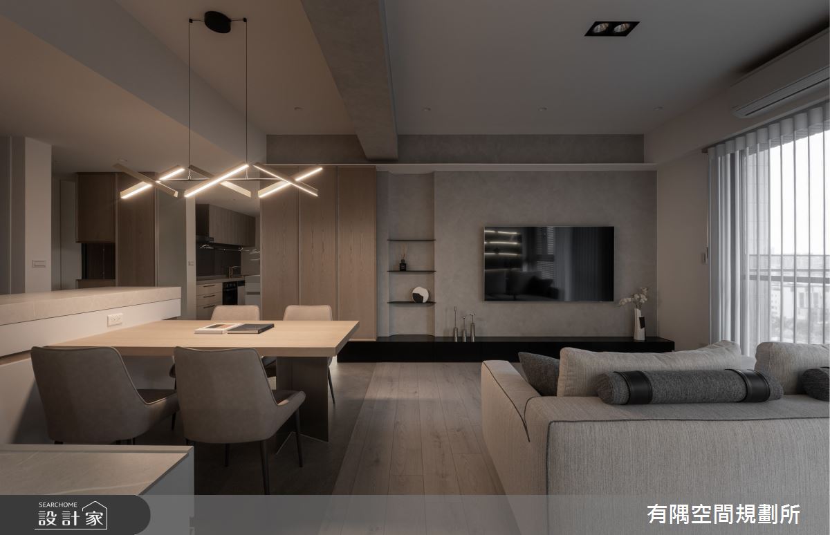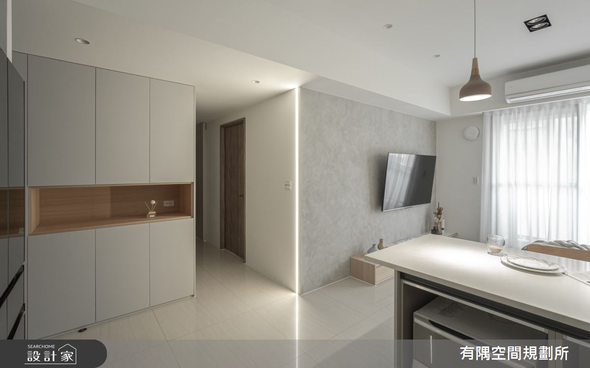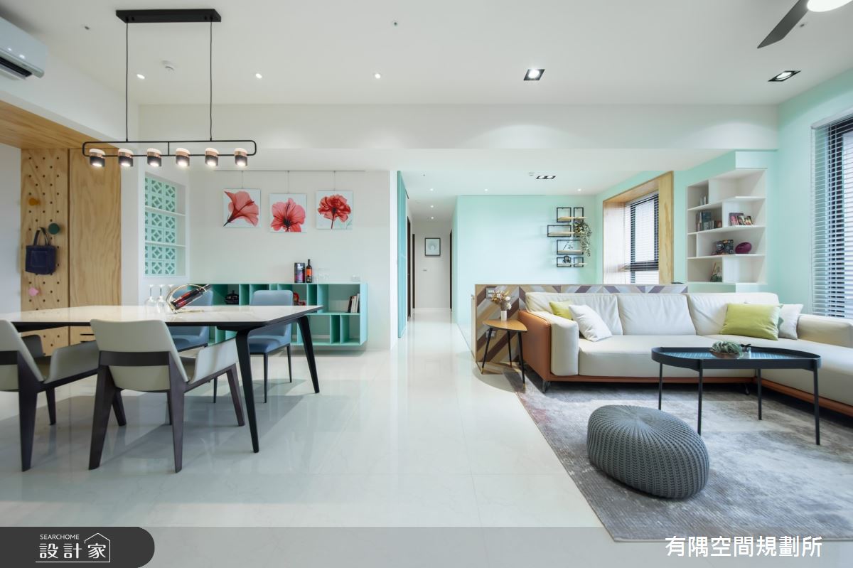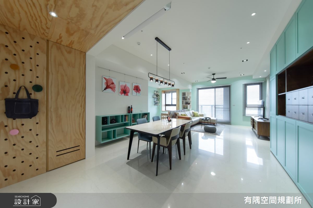 由有隅空間規劃所精心規劃的38坪三房住宅空間,家庭成員一共有2位大人、1位小孩。因應屋主需求,設計師運用北歐簡約風作為主軸,搭配烤漆、樂土、木作貼皮、系統板材,打造全家人的夢想家居。
