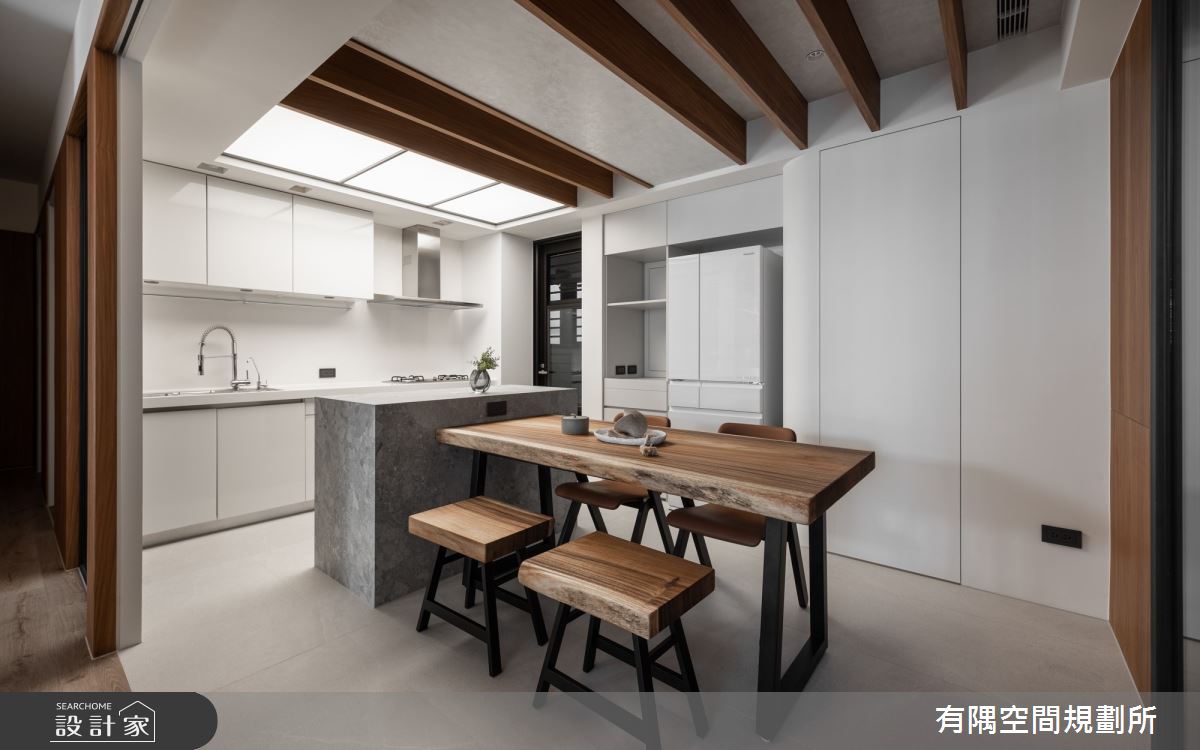 來自有隅空間規劃所的48坪混搭風住宅案,屋主一家人共有2位大人,是一間單層新古屋(10年以下)的兩房格局,設計師藉由建材以烤漆、樂土、木作貼皮、系統板材、鐵件、薄板、壓克力、長虹玻璃的搭配應用,實現一家人的理想生活。
