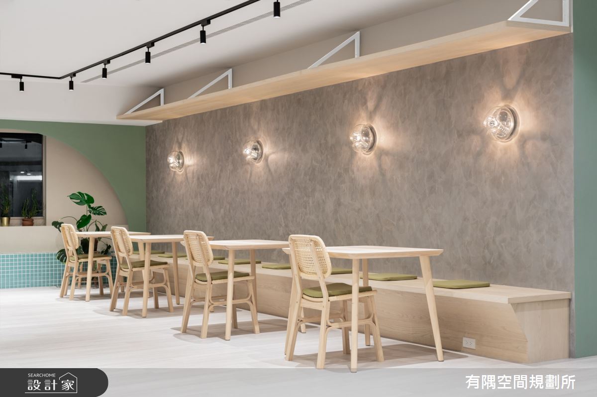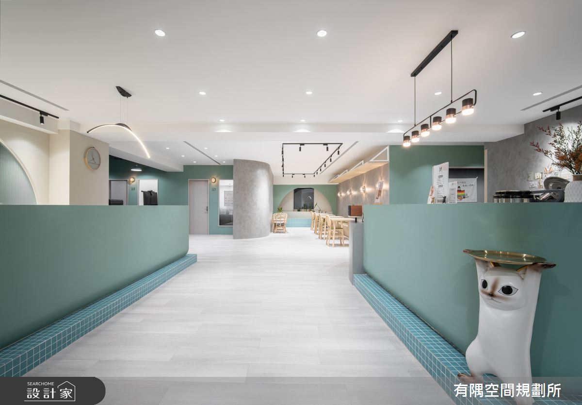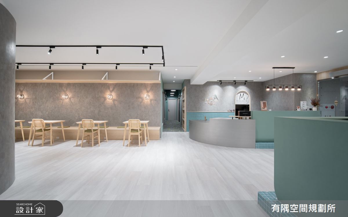 由有隅空間規劃所精心規劃的200坪商業空間,因應業主需求,設計師運用混搭風作為主軸,搭配建材水泥漆、樂土、鐵件、PVC地板、軌道燈、長虹玻璃、馬賽克磚,打造精緻品味的空間氛圍。