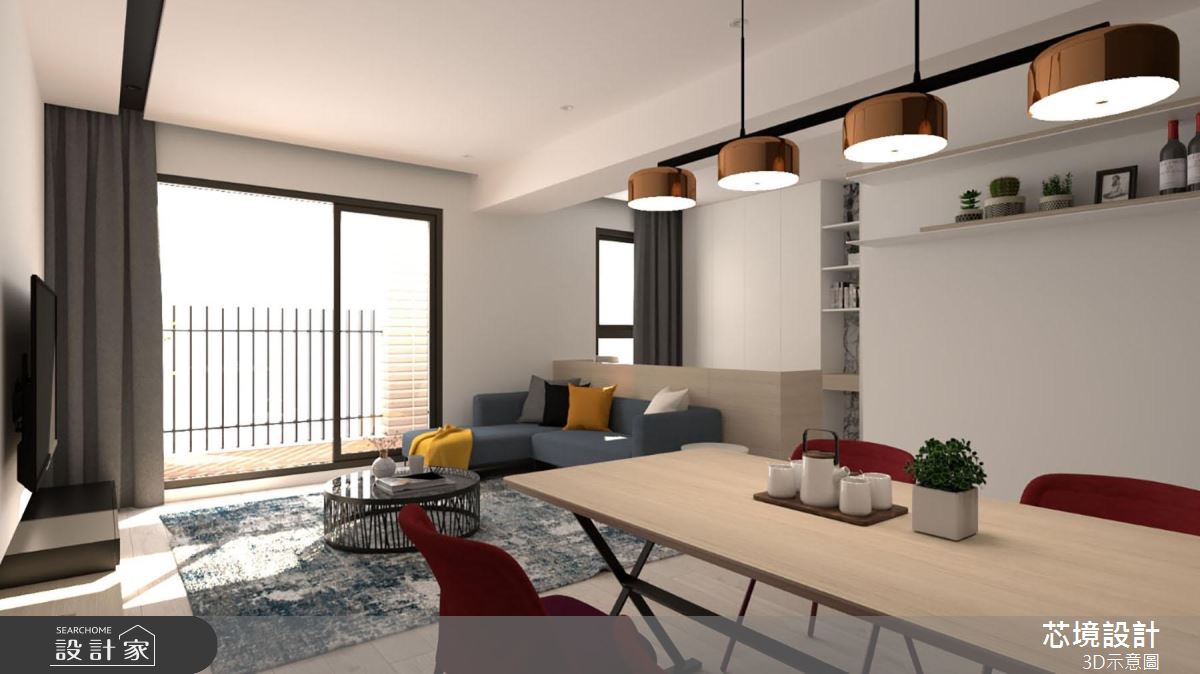 來自芯境設計有限公司的21.5坪現代風住宅案,屋主一家人共有2位大人,是一間單層預售屋的三房格局,設計師藉由建材以油漆、壁紙、水泥漆、超耐磨木地板、木地板、鐵件、系統板材、玻璃的搭配應用,實現一家人的理想生活。