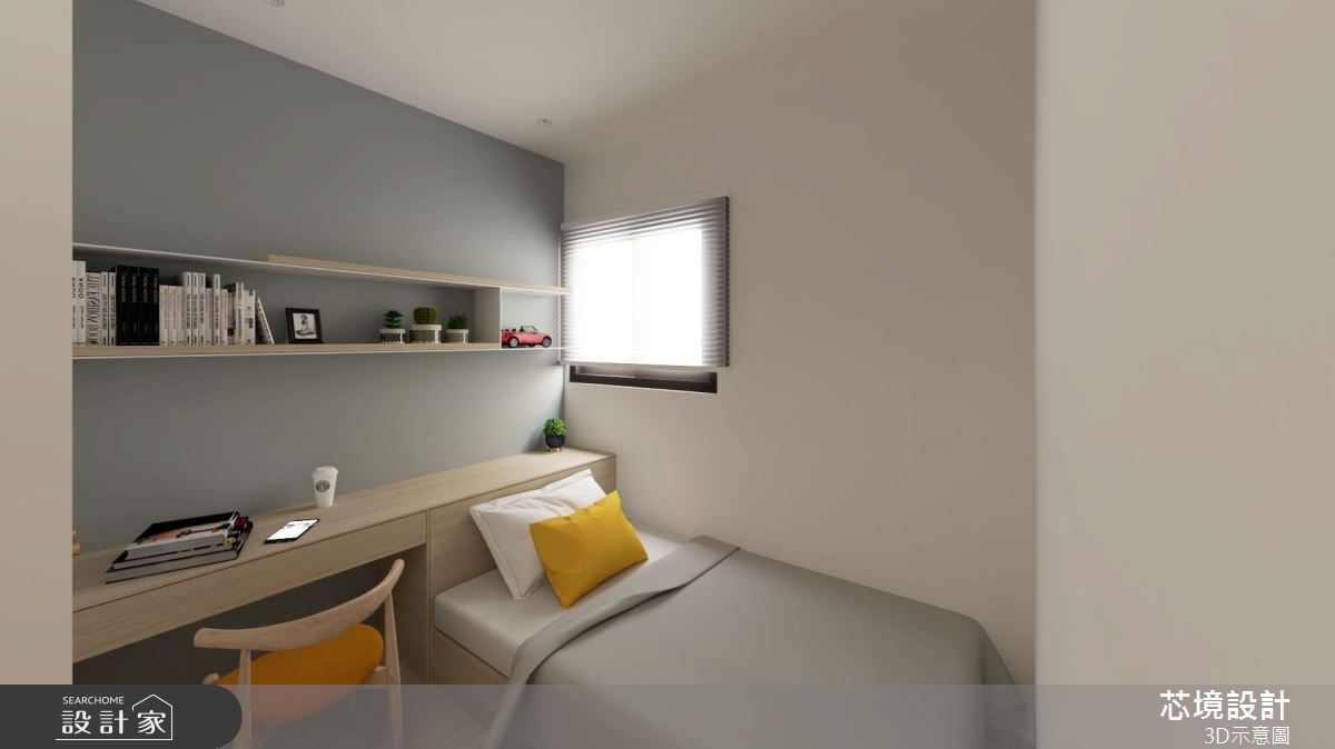 本案為芯境設計有限公司的15坪現代簡約風新成屋(5年以下)設計作品,格局為單層兩房的居住空間。居住成員包含1位大人。全室建材的搭配,應用油漆、壁紙、大圖輸出、木地板、烤漆、系統板材,展現溫馨的居家氛圍。