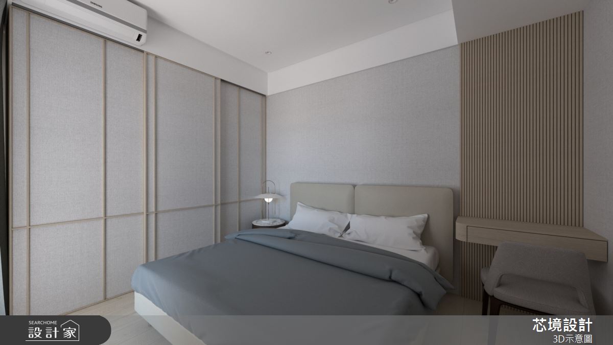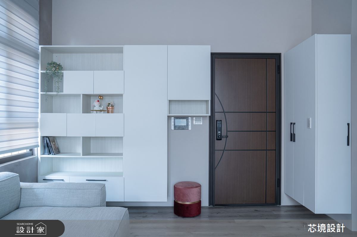 本案為芯境設計有限公司的18坪現代風新成屋(5年以下)設計作品,格局為單層三房的居住空間。居住成員包含2位大人、1位小孩。全室建材的搭配,應用油漆、花磚、壁紙、水泥漆、超耐磨木地板、木地板、鐵件、鏡子、系統板材,展現溫馨的居家氛圍。