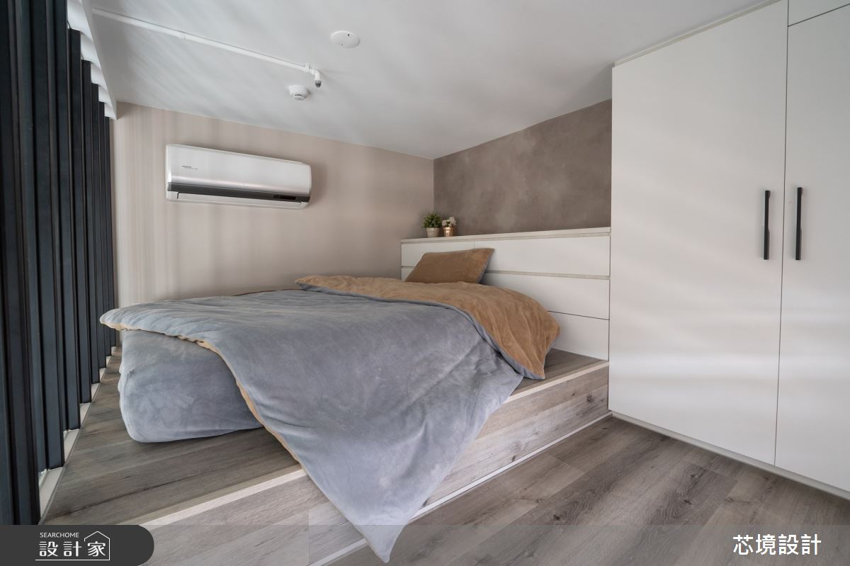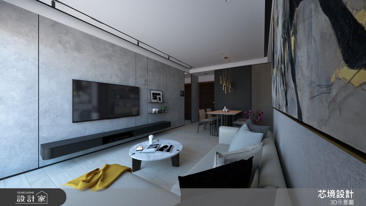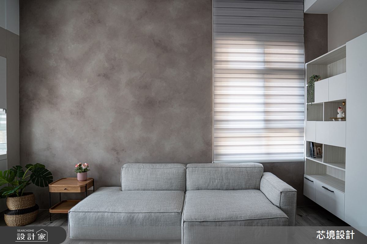 由芯境設計有限公司精心規劃的10坪一房住宅空間,家庭成員一共有1位大人。因應屋主需求,設計師運用現代風作為主軸,搭配油漆、水泥漆、木地板、鐵件、系統板材、樂土,打造全家人的夢想家居。