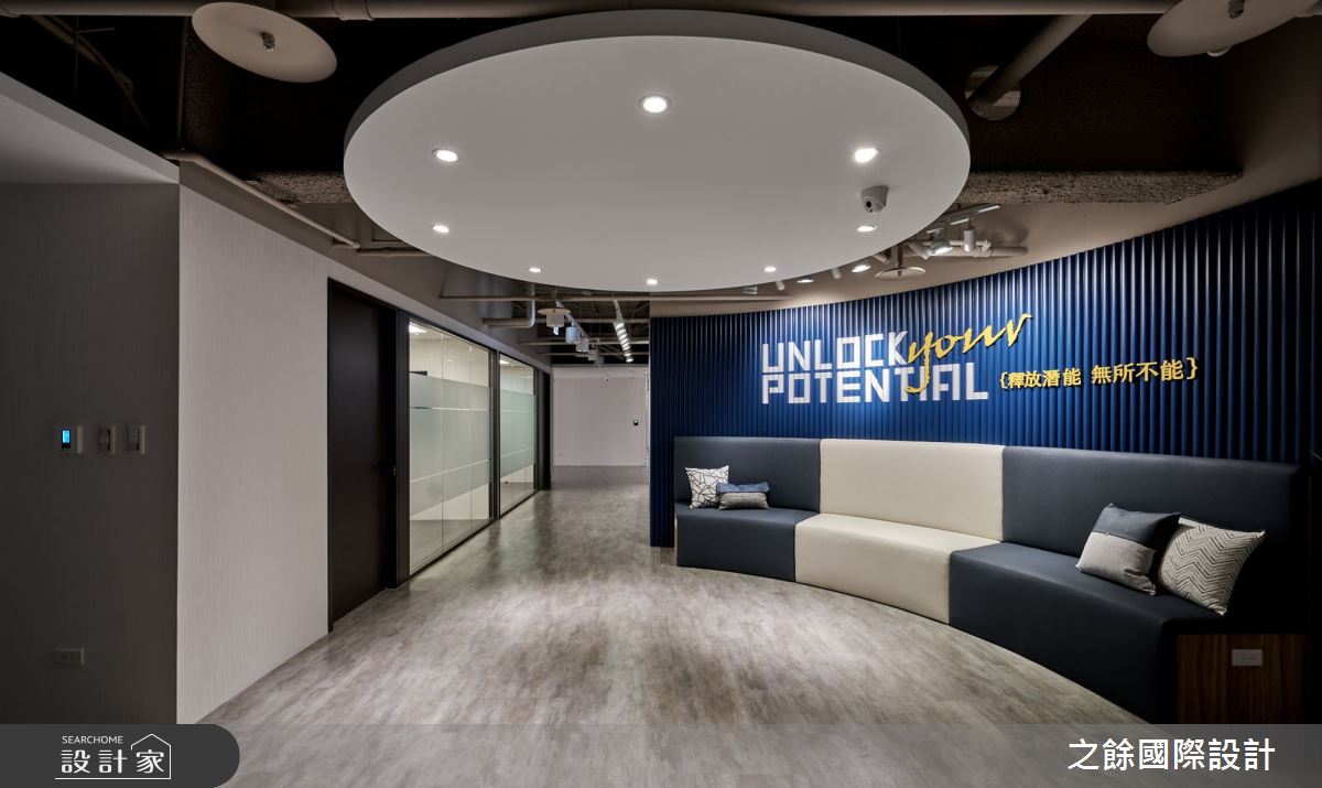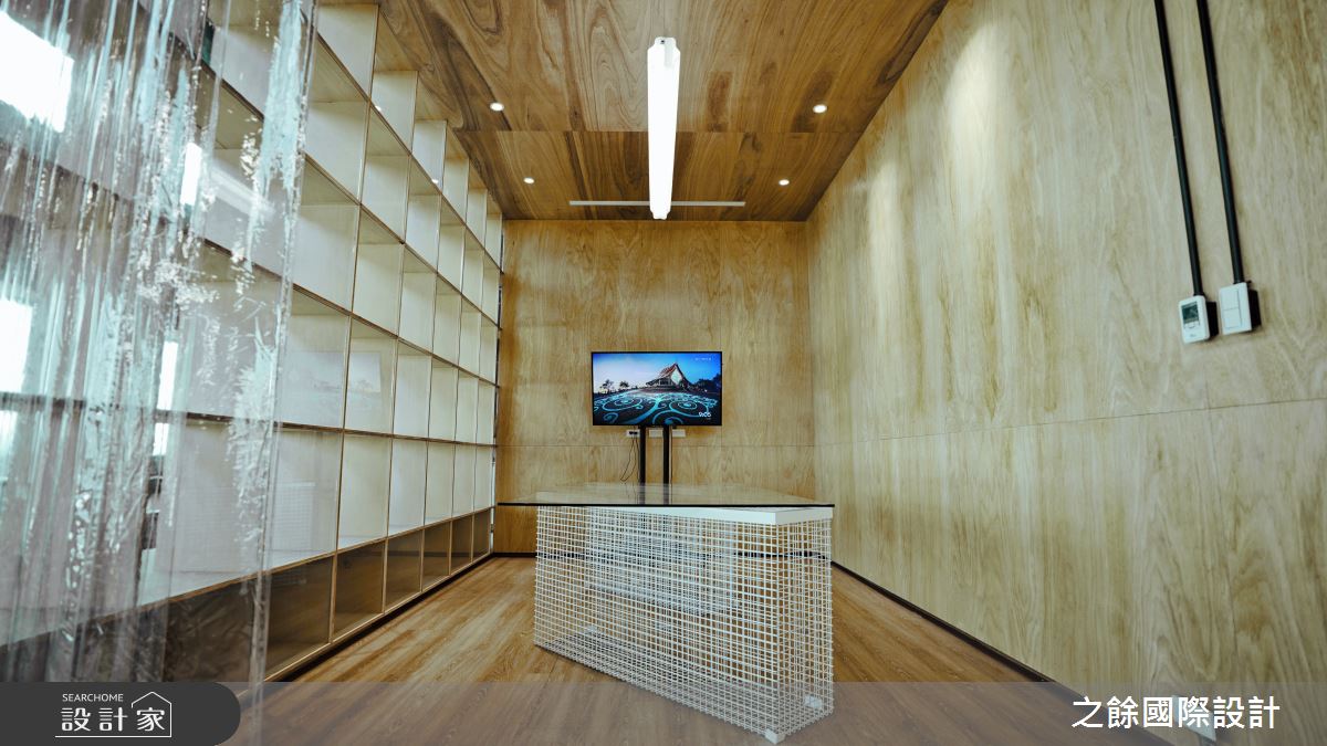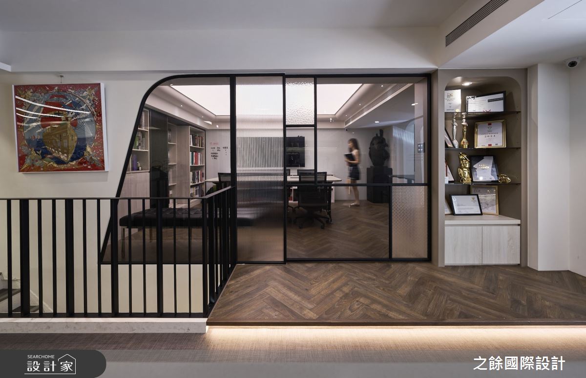 由之餘國際設計精心規劃的50坪商業空間,因應業主需求,設計師運用現代風作為主軸,搭配建材壁紙、PVC地板、鐵件、系統板材、噴砂玻璃、壓克力藝術雕刻,打造精緻品味的空間氛圍。
