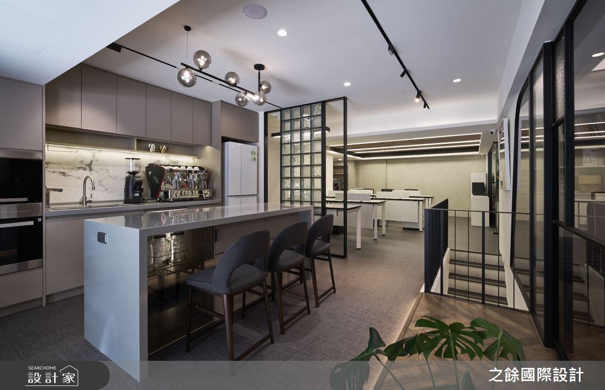 由之餘國際設計精心規劃的60坪商業空間,設計師運用現代風作為主軸,搭配建材玻璃磚、復古玻璃、鐵件、編織地毯、藝術漆、吸音棉,打造精緻品味的空間氛圍。
