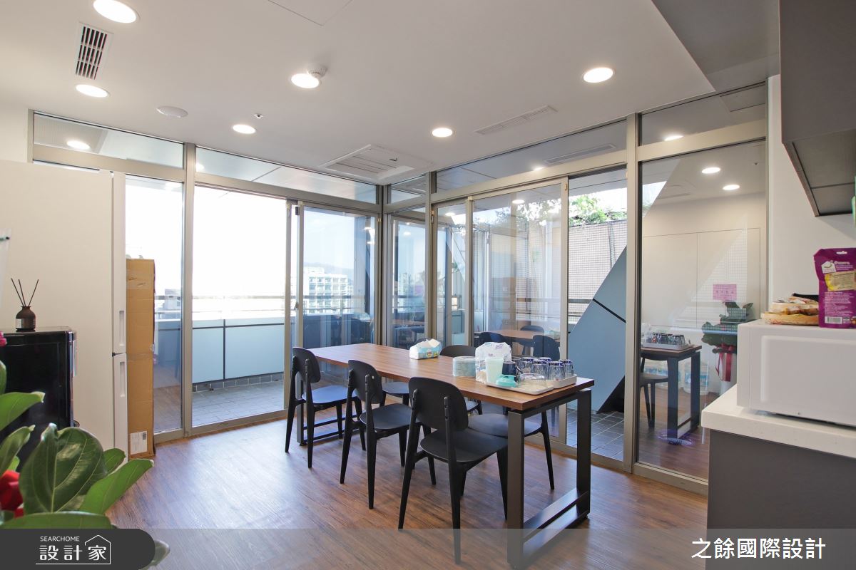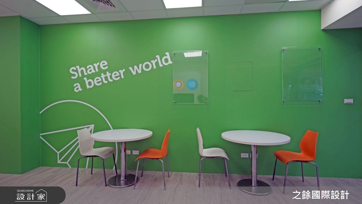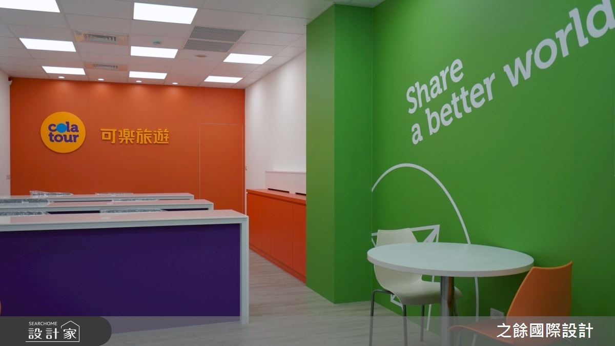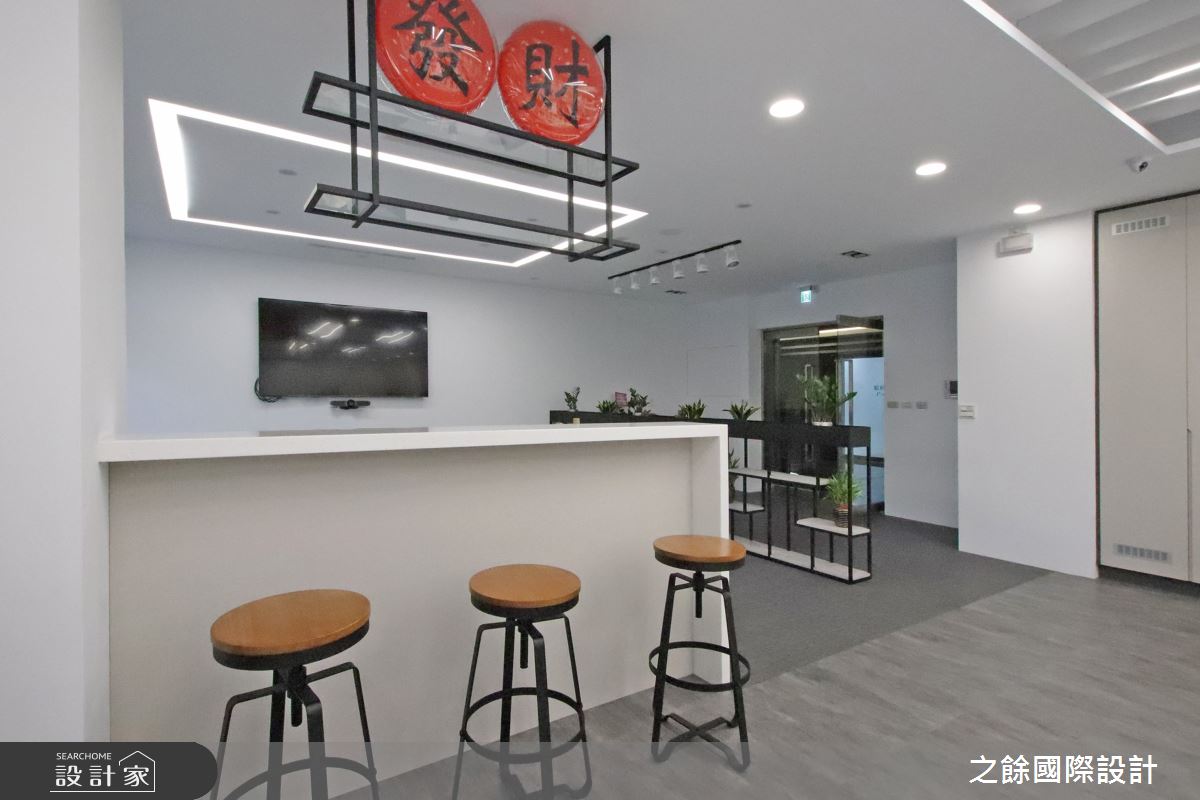 之餘國際設計以油漆、PVC地板、大圖輸出、烤漆、壓克力藝術字、木作貼皮的搭配應用,呈現現代風的風格氣息,將此間39坪老屋(16~30年)優雅詮釋成舒適愜意的商業空間。