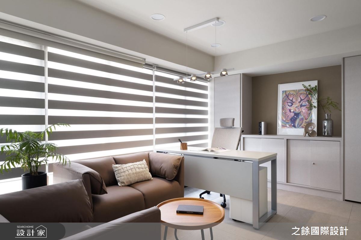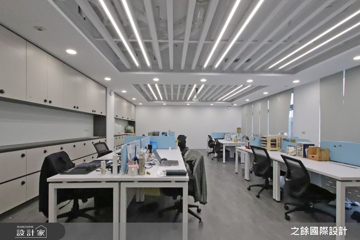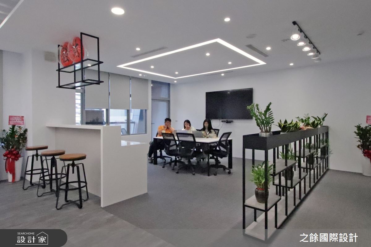 由之餘國際設計精心規劃的70坪商業空間,因應業主需求,設計師運用現代風作為主軸,搭配建材油漆、PVC地板、烤玻、烤漆、系統板材、線板、噴砂玻璃、軌道燈,打造精緻品味的空間氛圍。