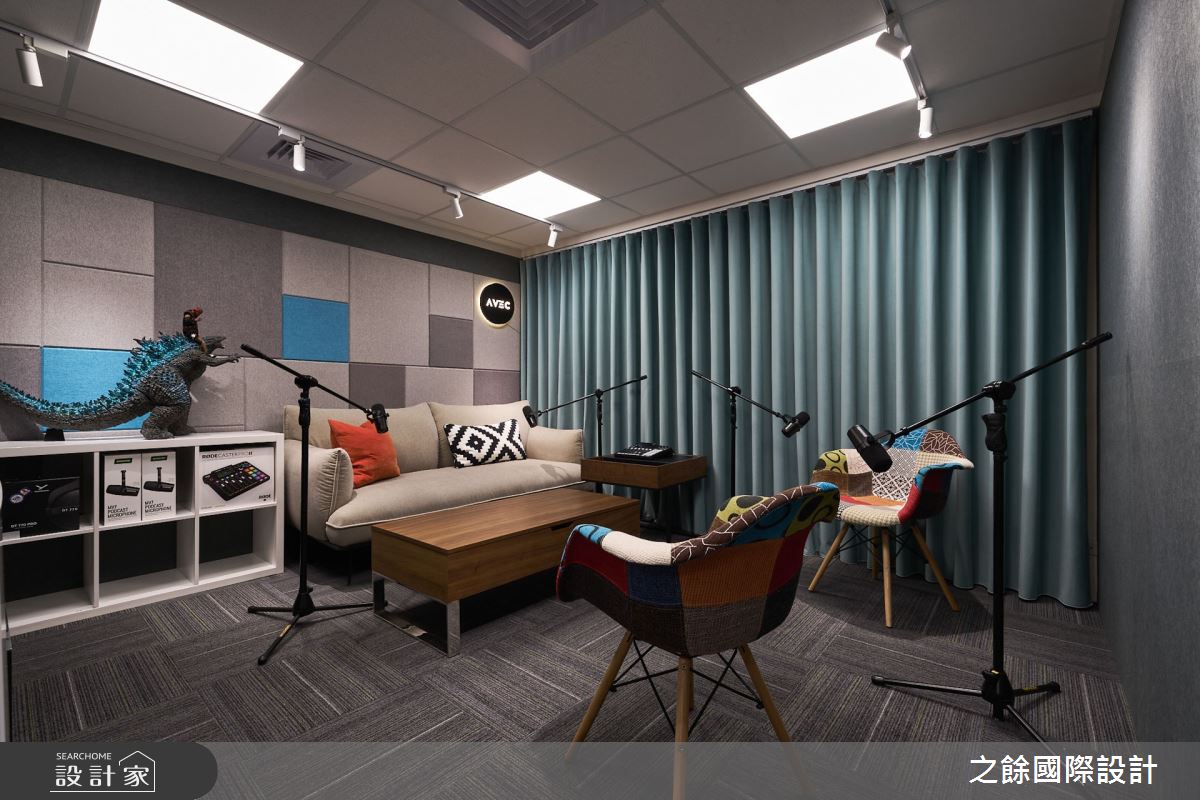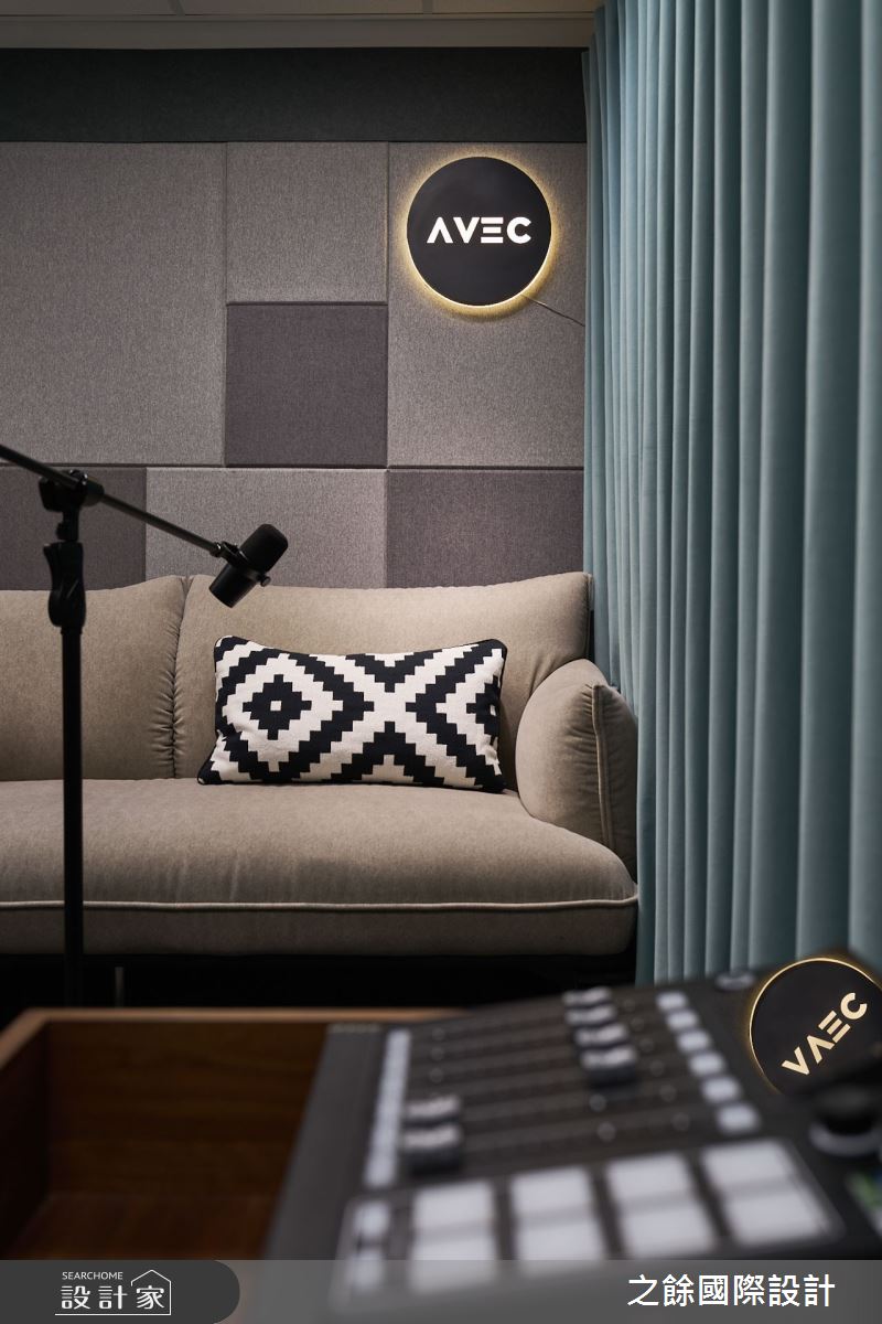 之餘國際設計以日本Felmenon吸音板、地毯、礦纖天花板、耳機、專業XLR動圈麥克風、錄音介面、隔音窗簾的搭配應用,呈現現代風的風格氣息,將此間5坪老屋(16~30年)優雅詮釋成舒適愜意的商業空間。