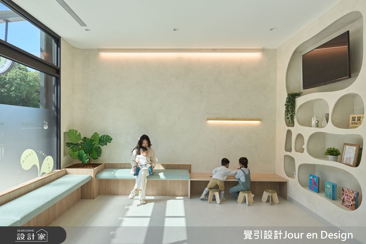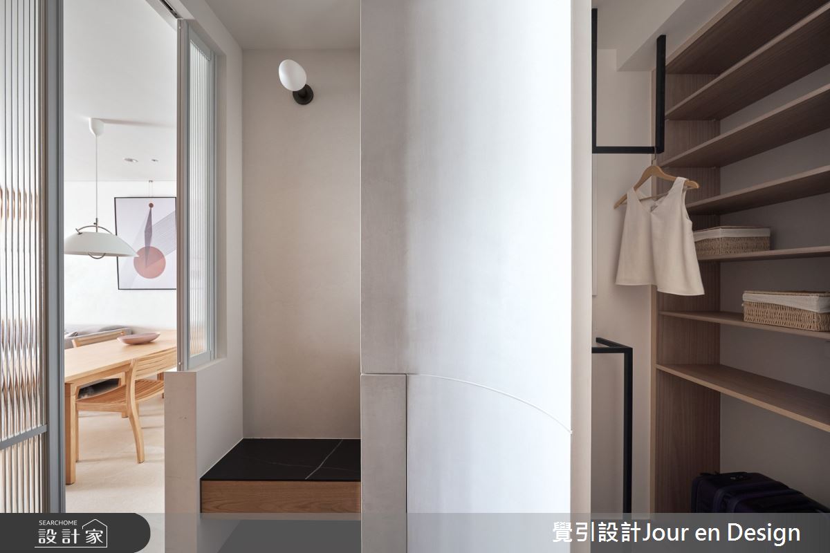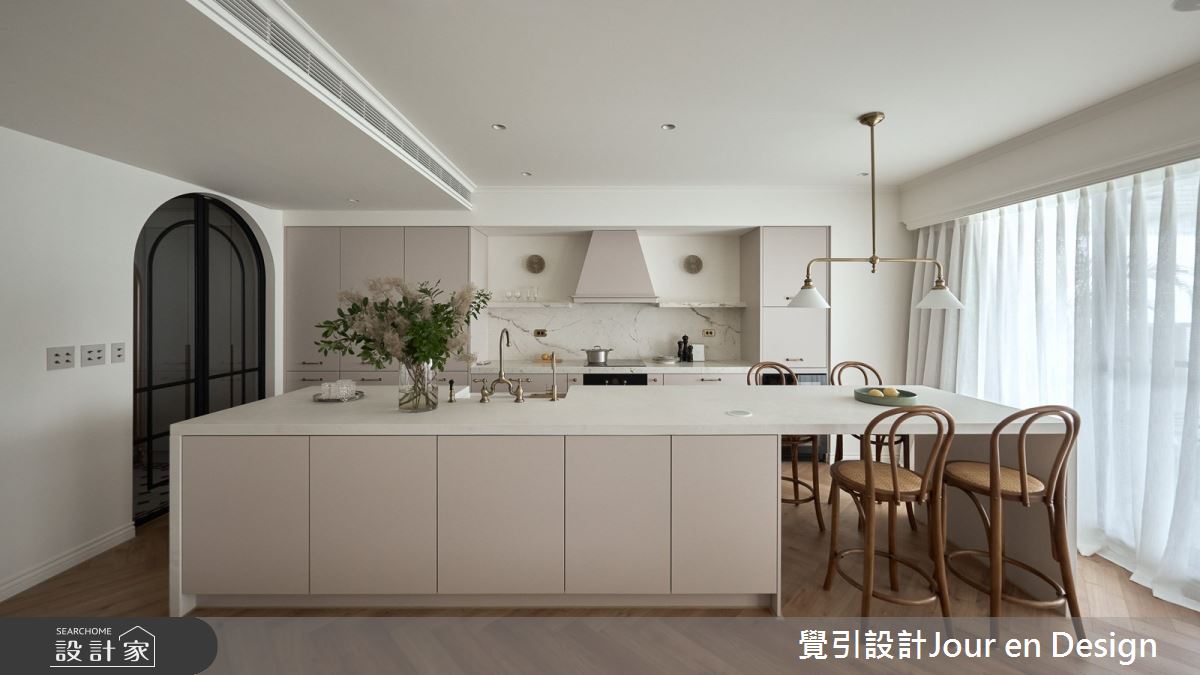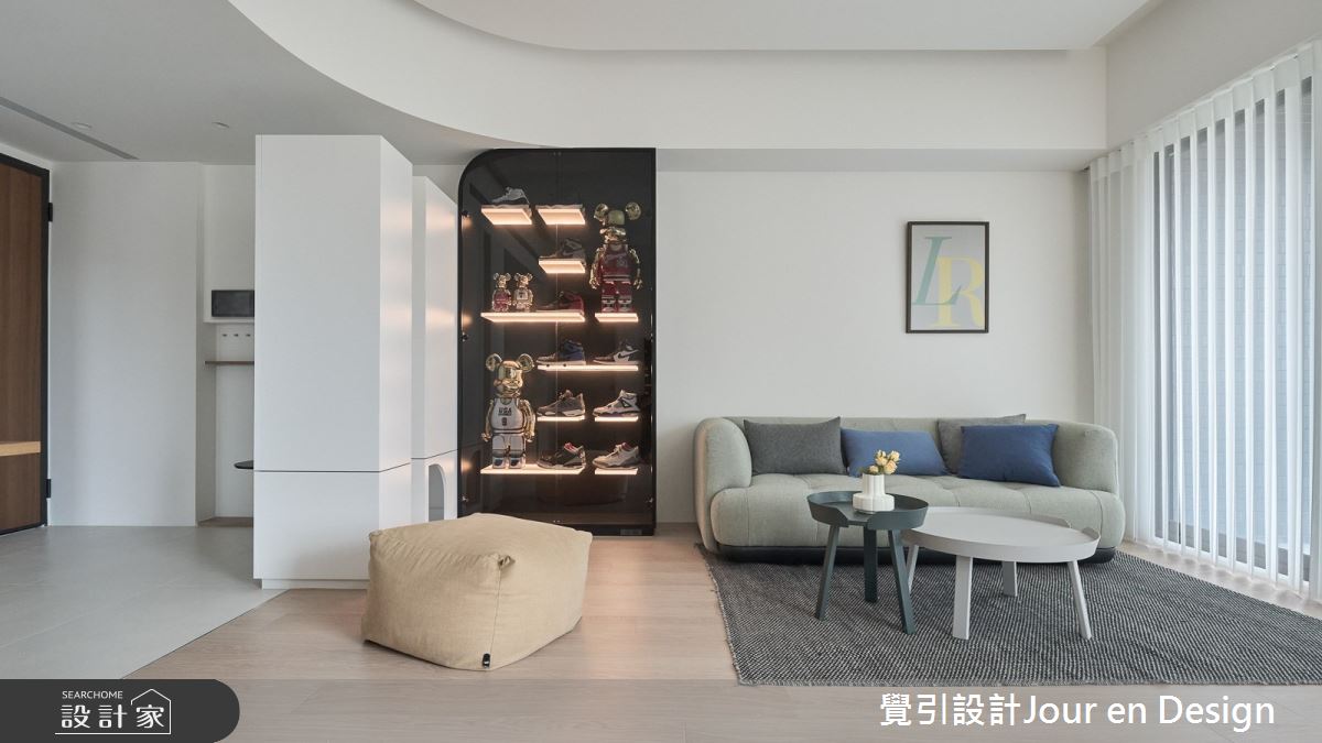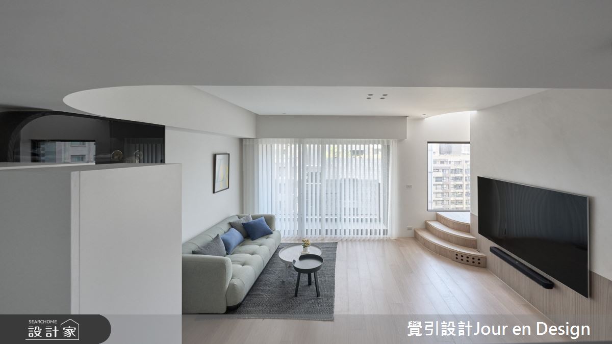 由覺引設計Jour en Design精心規劃的32坪住宅空間。因應屋主需求,設計師運用現代風作為主軸,搭配特殊漆、白橡鋼刷實木皮、長虹玻璃、義大利石紋薄,打造全家人的夢想家居。