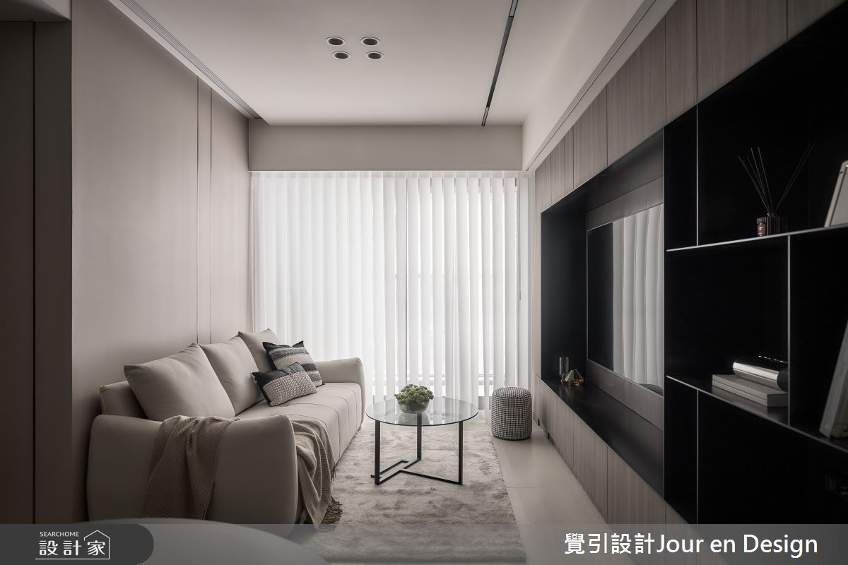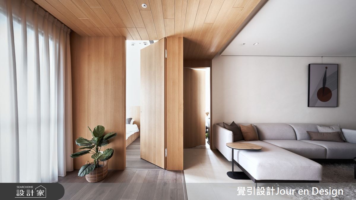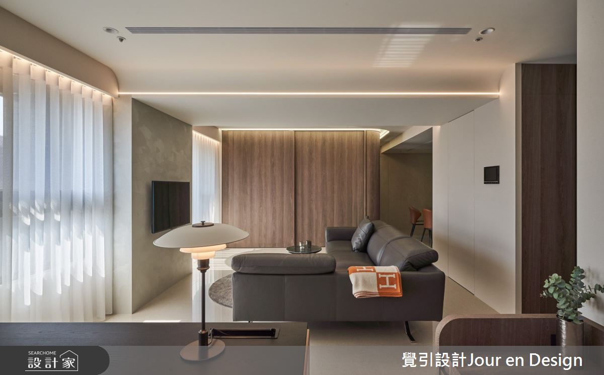 本案為覺引設計Jour en Design的45坪現代風新古屋(10年以下)設計作品,格局為單層的居住空間。全室建材的搭配,應用特殊漆、實木皮、訂製鐵件、鋁框玻璃門、進口石紋地磚,展現溫馨的居家氛圍。