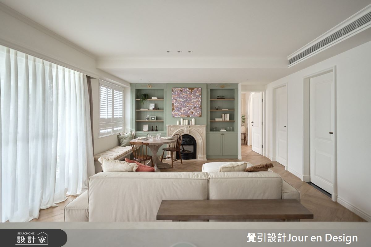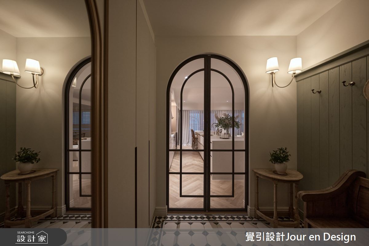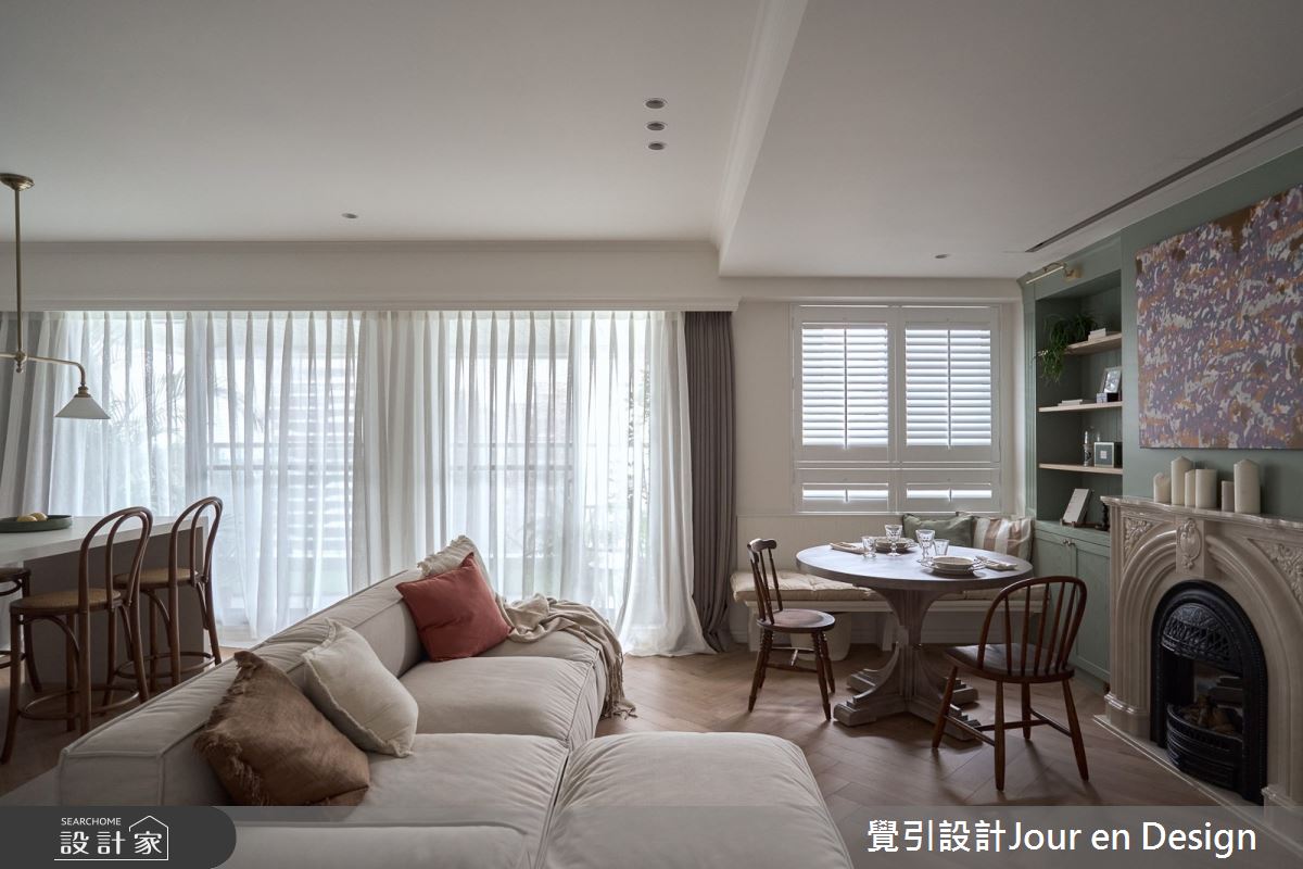 由覺引設計Jour en Design精心規劃的30坪兩房住宅空間,家庭成員一共有2位大人、1位小孩。因應屋主需求,設計師運用英式風作為主軸,搭配花磚、壁紙、超耐磨木地板、木地板、鐵件、木作貼皮、烤漆、壓克力、鋼刷木皮、大理石、磁磚、木百葉、賽麗石、石材、線板、噴漆,打造全家人的夢想家居。