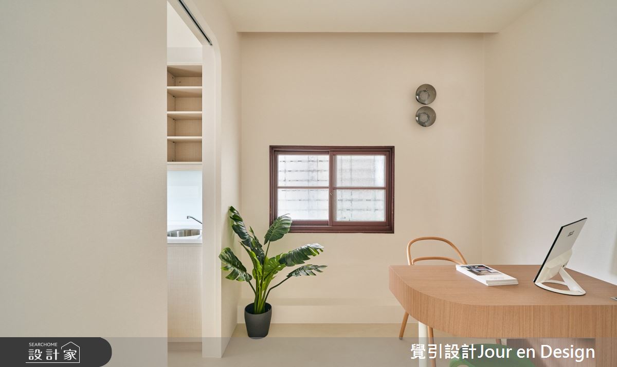 本案為覺引設計Jour en Design的45坪現代風新古屋(10年以下)設計作品,格局為單層的居住空間。全室建材的搭配,應用特殊漆、實木皮、訂製鐵件、鋁框玻璃門、進口石紋地磚,展現溫馨的居家氛圍。