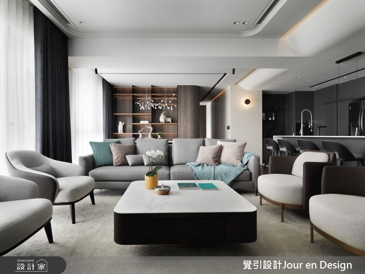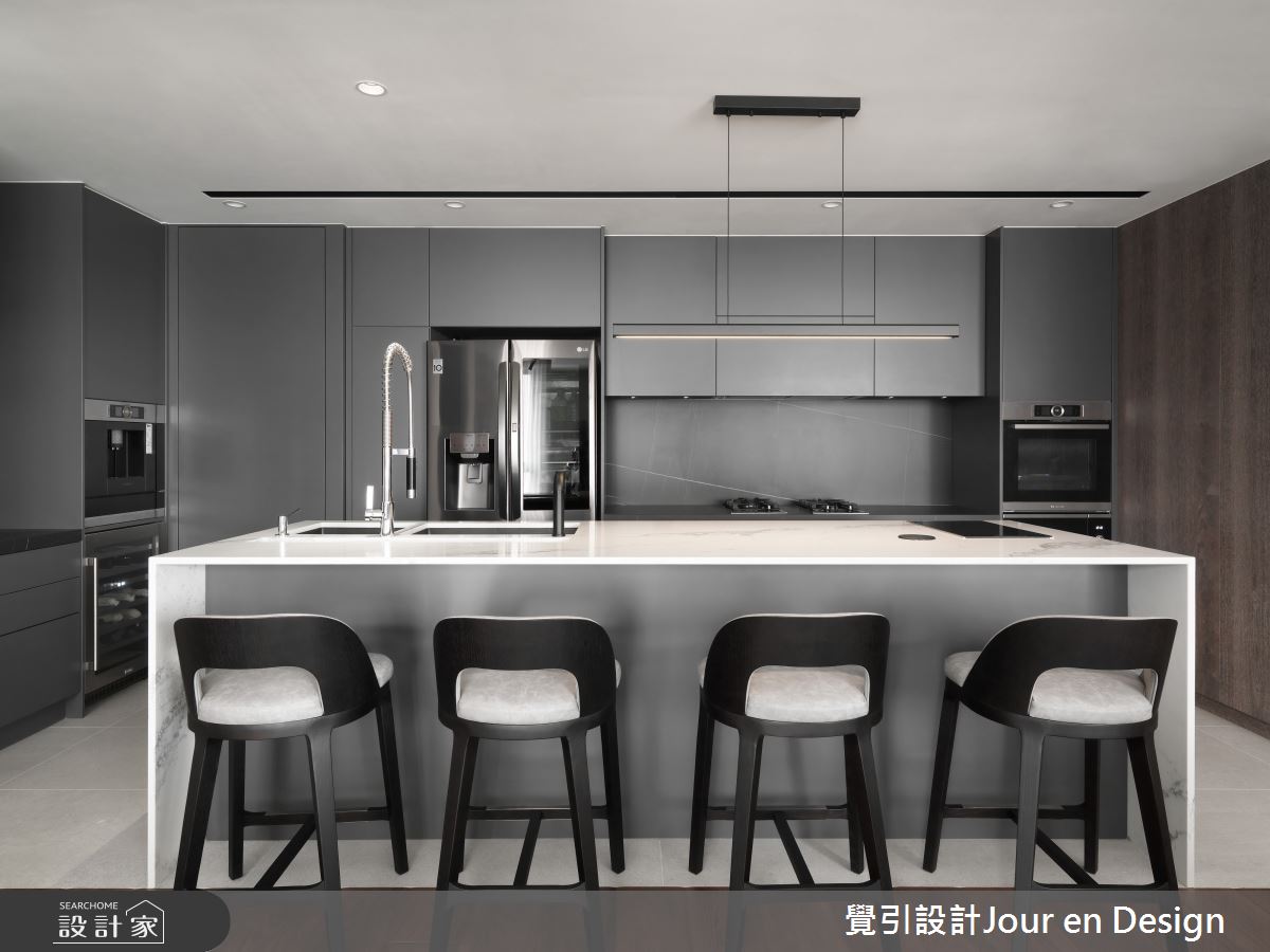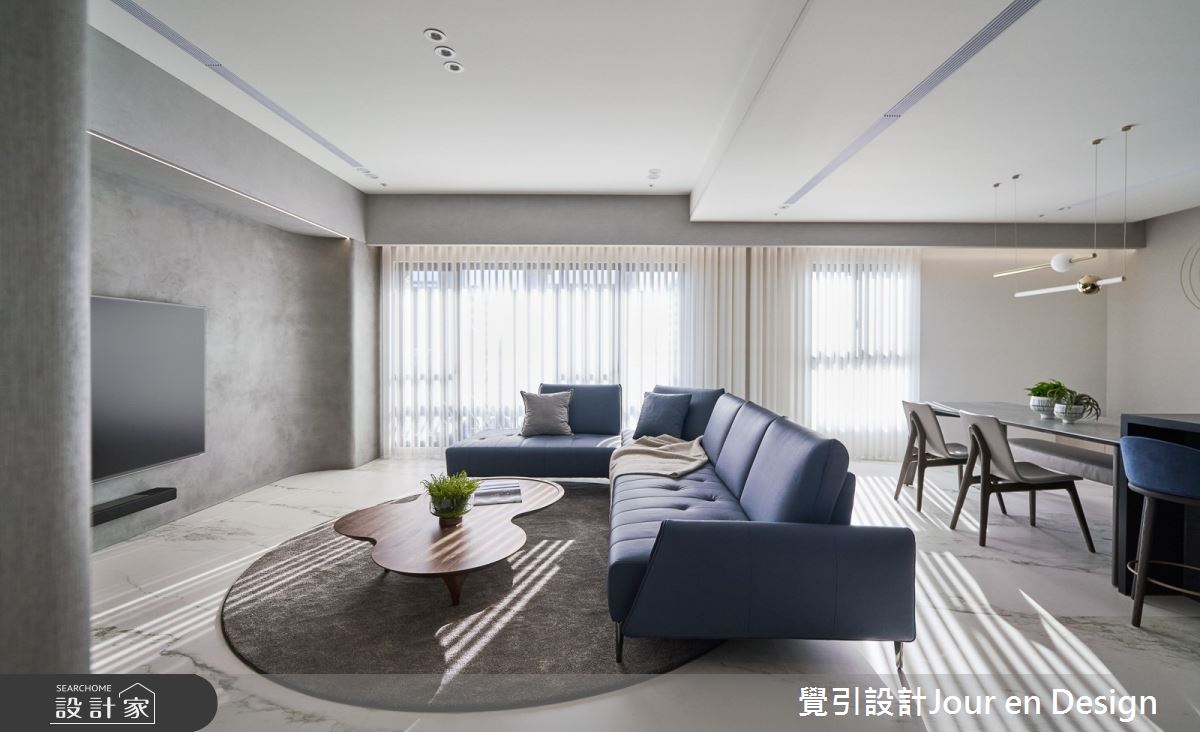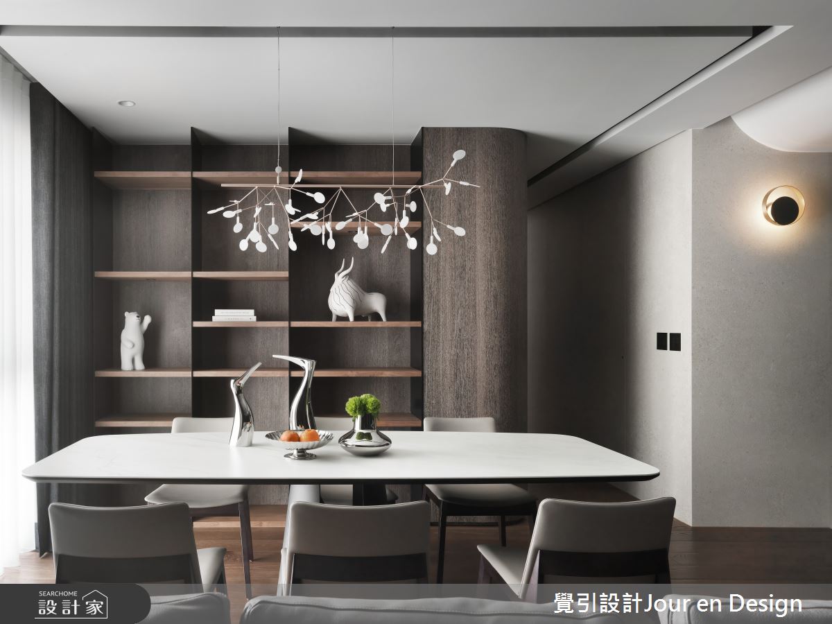 由覺引設計Jour en Design精心規劃的32坪住宅空間。因應屋主需求,設計師運用現代風作為主軸,搭配特殊漆、白橡鋼刷實木皮、長虹玻璃、義大利石紋薄,打造全家人的夢想家居。