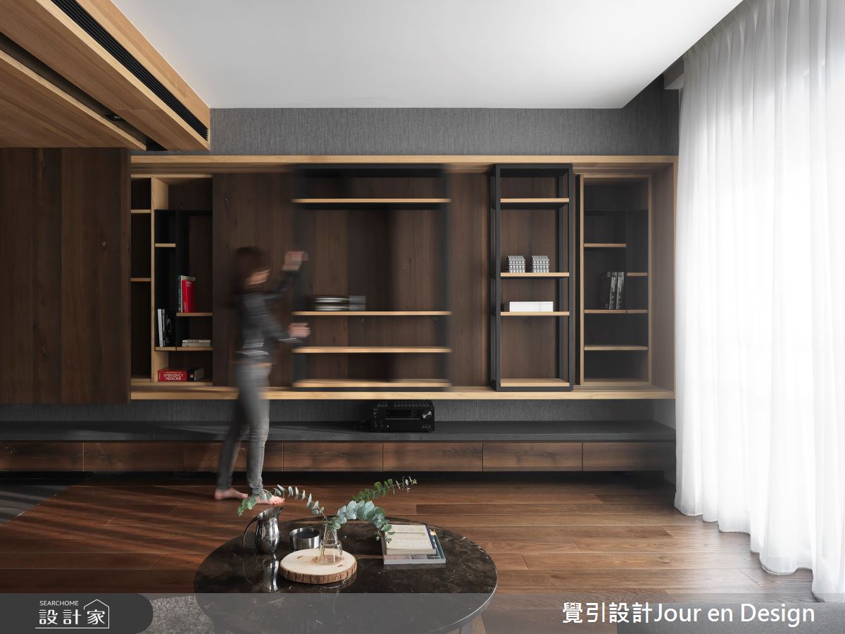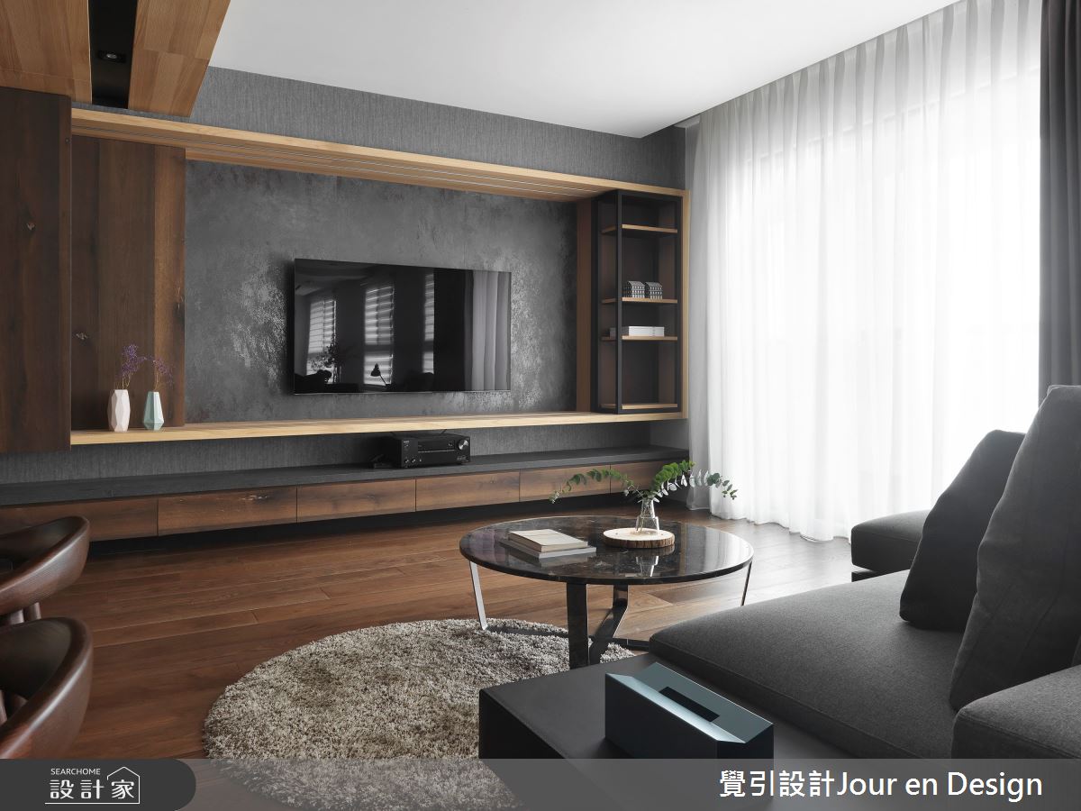 來自覺引設計Jour en Design的35坪現代風住宅案,是一間單層新成屋(5年以下)的格局,設計師藉由建材以訂製鋼刷實木皮、金屬薄板磚、訂製鐵件的搭配應用,實現一家人的理想生活。