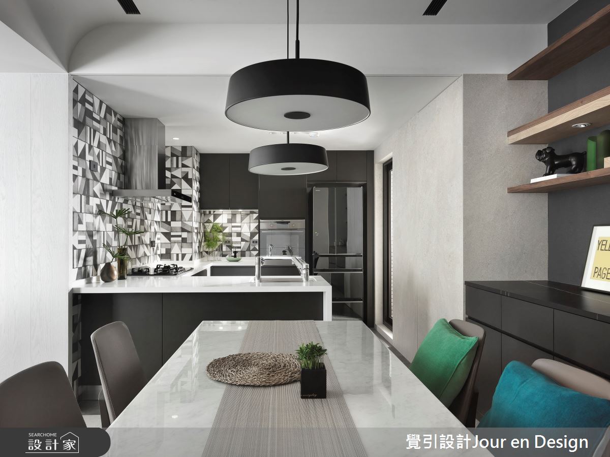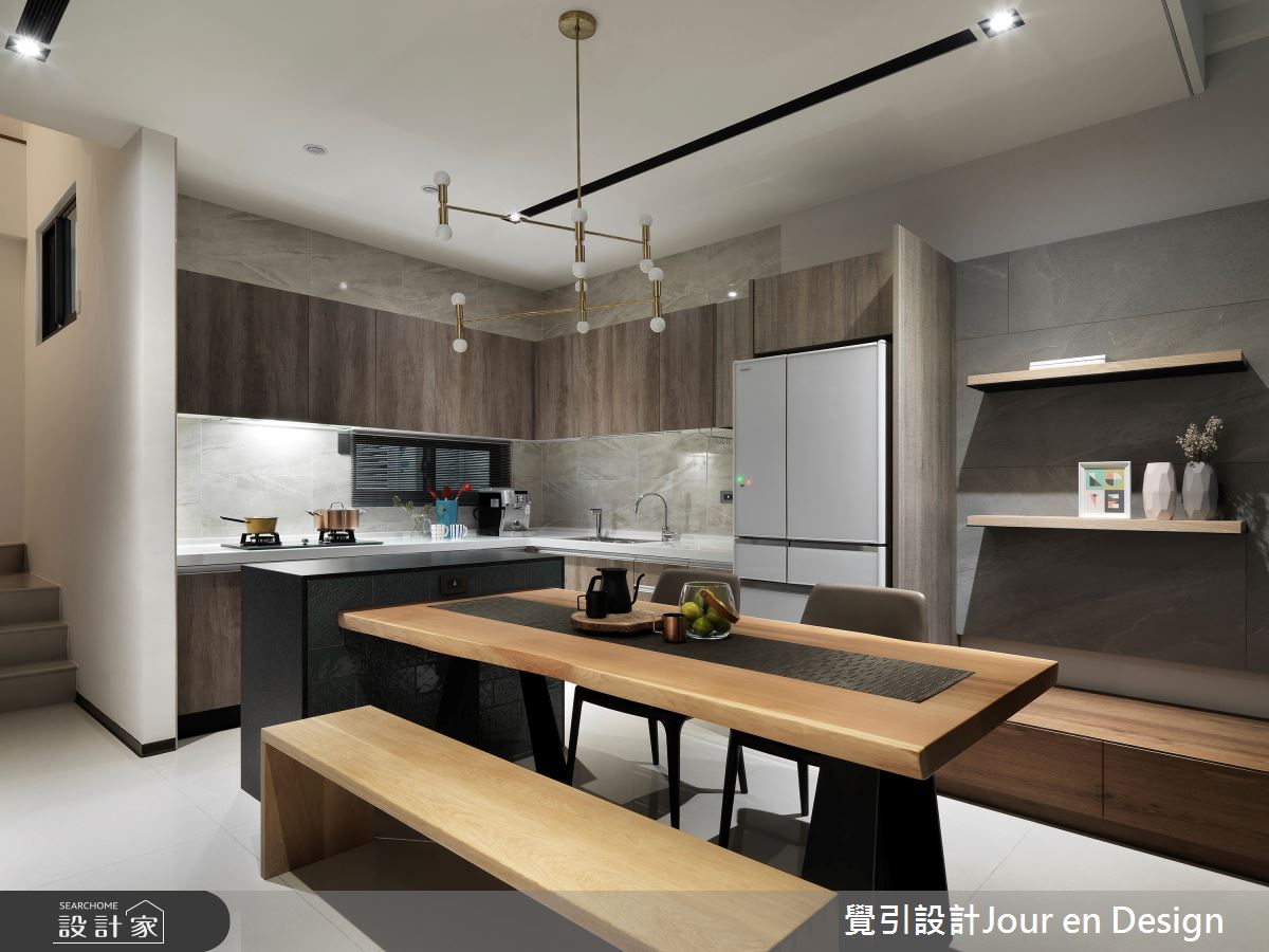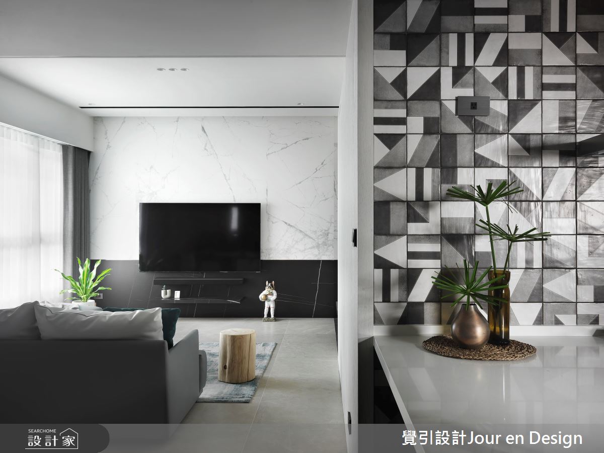 來自覺引設計Jour en Design的35坪現代風住宅案,是一間單層新成屋(5年以下)的格局,設計師藉由建材以進口花磚、義大利石紋薄板磚、鐵件、進口壁紙的搭配應用,實現一家人的理想生活。
