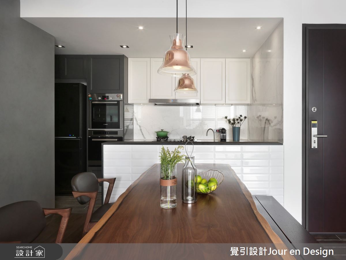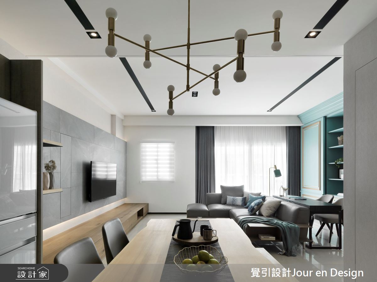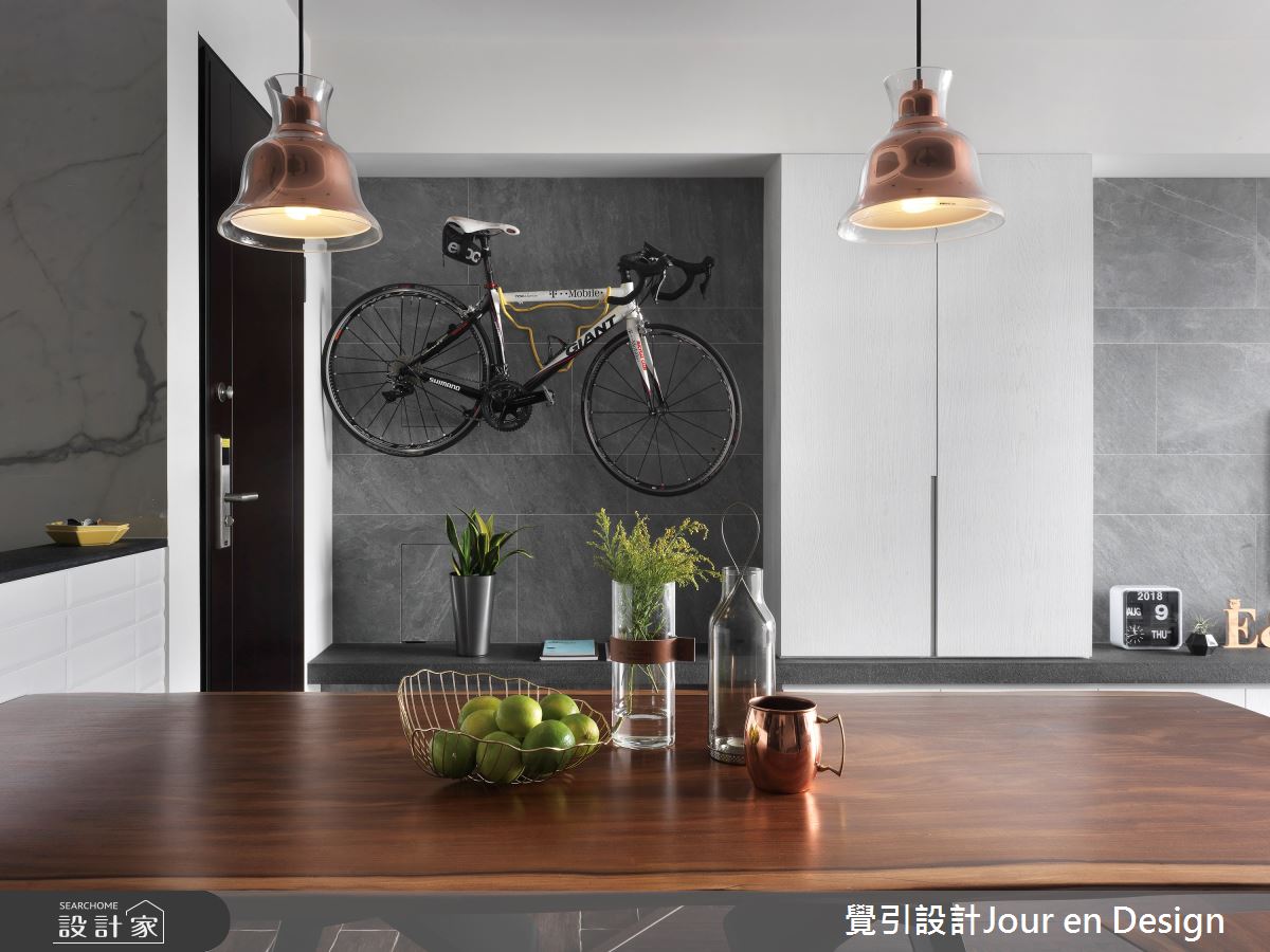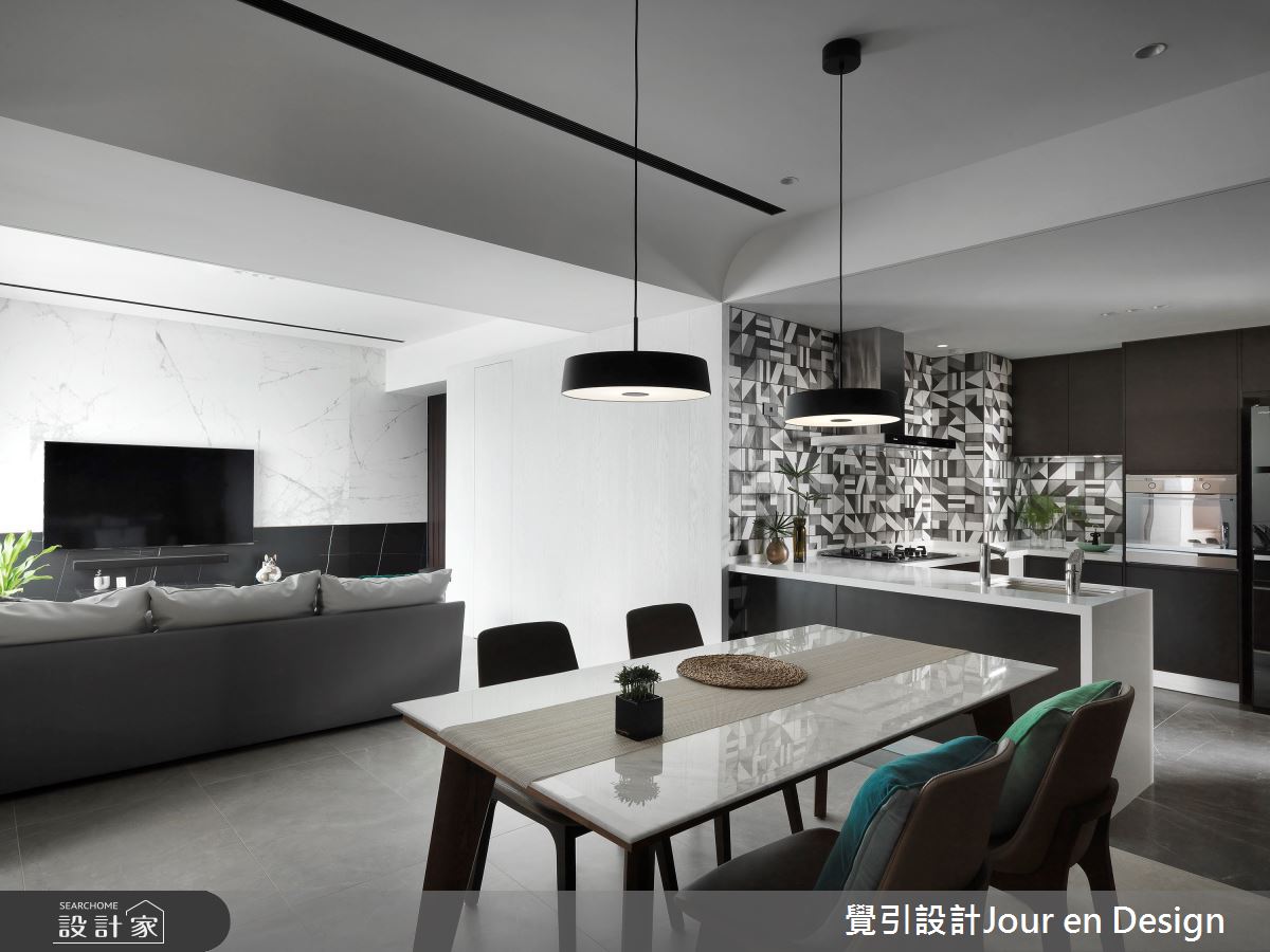 來自覺引設計Jour en Design的35坪現代風住宅案,是一間單層新成屋(5年以下)的格局,設計師藉由建材以進口花磚、義大利石紋薄板磚、鐵件、進口壁紙的搭配應用,實現一家人的理想生活。