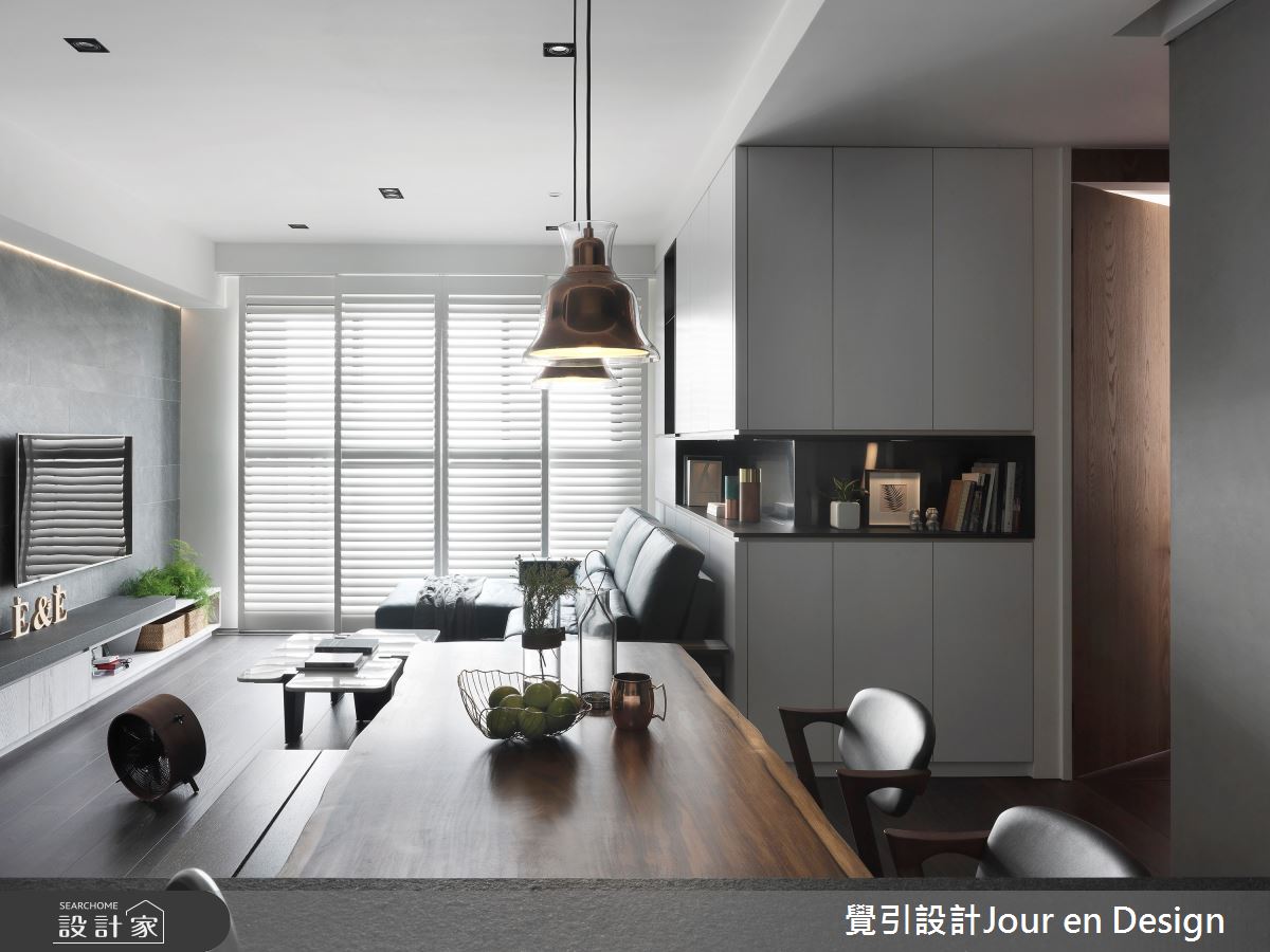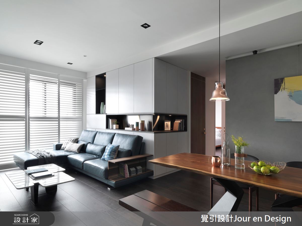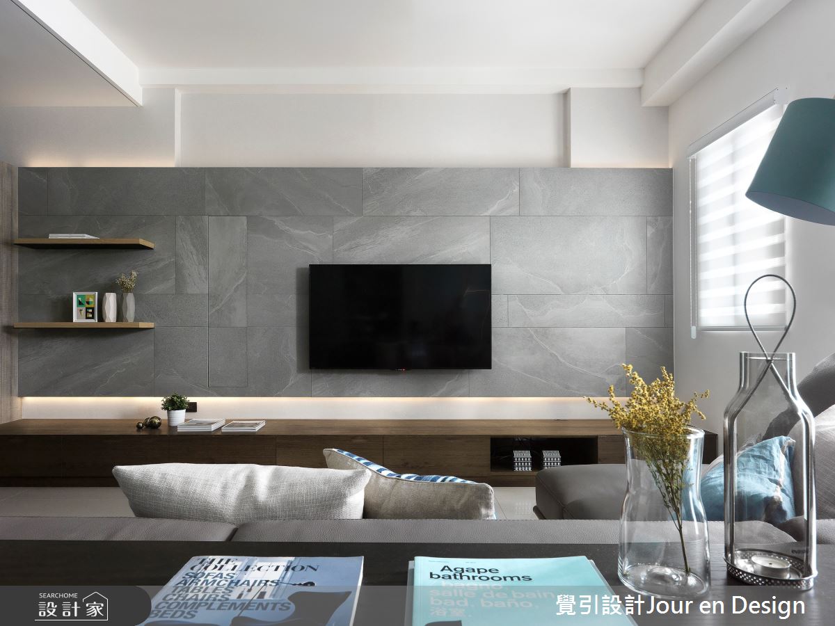 本案為覺引設計Jour en Design的23坪現代風新成屋(5年以下)設計作品,格局為單層的居住空間。全室建材的搭配,應用進口石紋磁磚、超耐磨木地板、大理石紋壁磚、訂製鐵件,展現溫馨的居家氛圍。