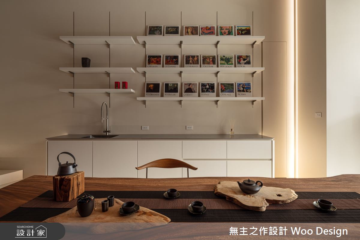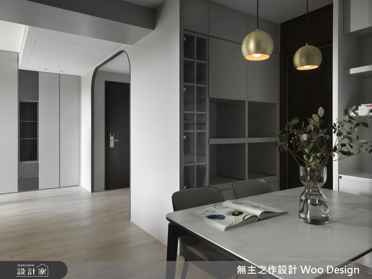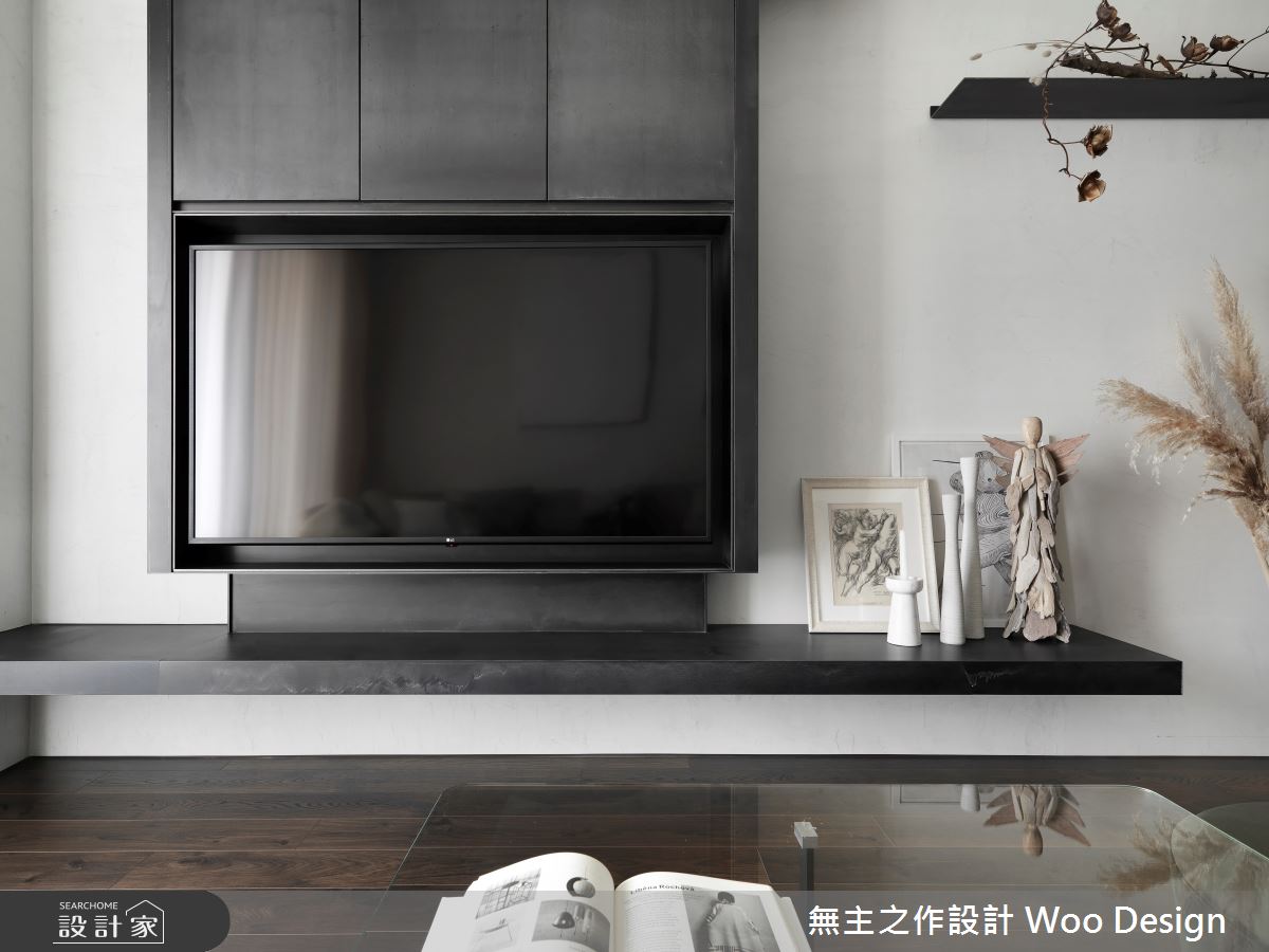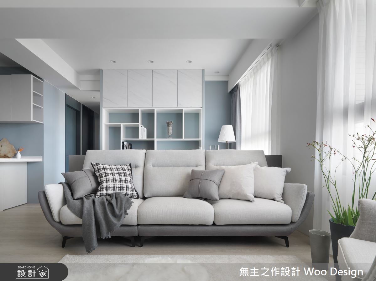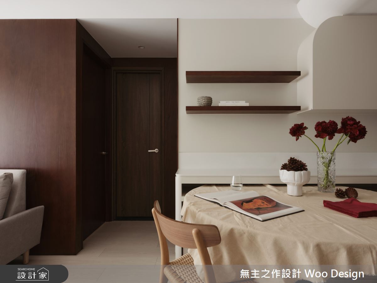 無主之作空間設計以乳膠漆、超耐磨木地板、烤漆、系統板材、賽麗石、噴漆的搭配應用,呈現簡約風居家氛圍,將此間29坪、三房、單層、新成屋(5年以下)打造成舒適愜意的家庭空間,完成2位大人全家人的夢想之居。