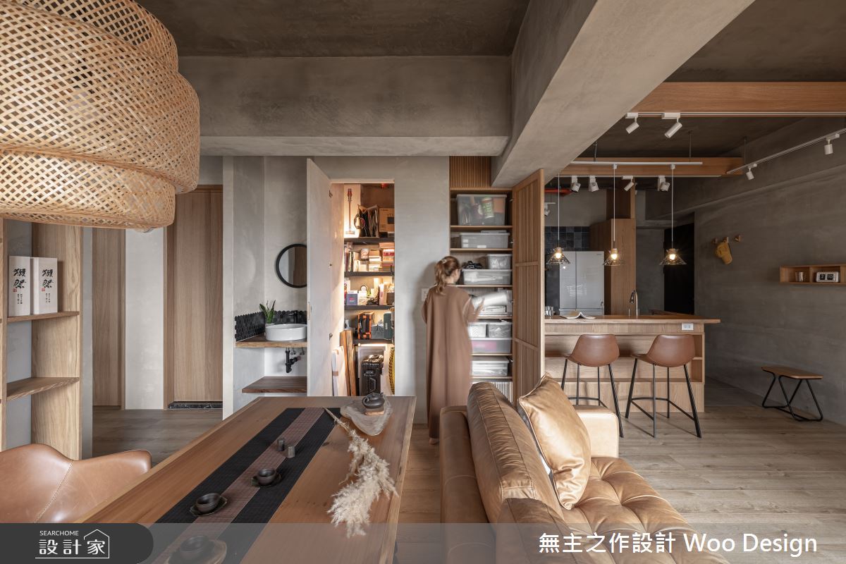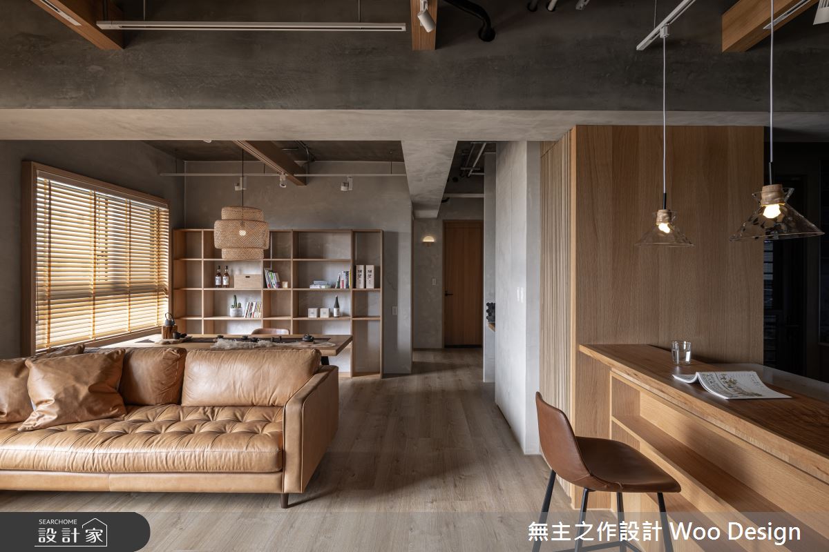 由無主之作空間設計精心規劃的33坪三房住宅空間,家庭成員一共有2位大人、2位小孩。因應屋主需求,設計師運用工業風作為主軸,搭配乳膠漆、超耐磨木地板、不鏽鋼、鐵件、烤漆、樂土、木百葉、軌道燈,打造全家人的夢想家居。