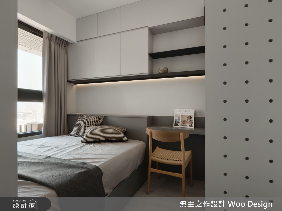本案為無主之作空間設計的29坪現代簡約風預售屋設計作品,格局為單層三房的居住空間。居住成員包含1位大人。全室建材的搭配,應用乳膠漆、花磚、超耐磨木地板、PVC地板、烤漆、系統板材、賽麗石、噴漆,展現溫馨的居家氛圍。