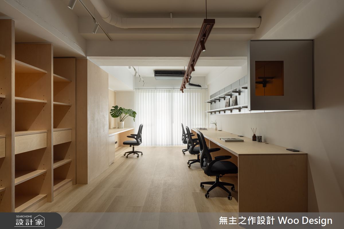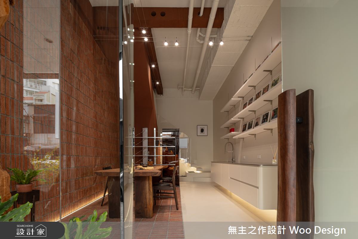 無主之作空間設計以乳膠漆、木地板、不鏽鋼、鐵件、人造石、軌道燈、噴漆、石頭漆的搭配應用,呈現混搭風的風格氣息,將此間27坪老屋(16~30年)優雅詮釋成舒適愜意的商業空間。