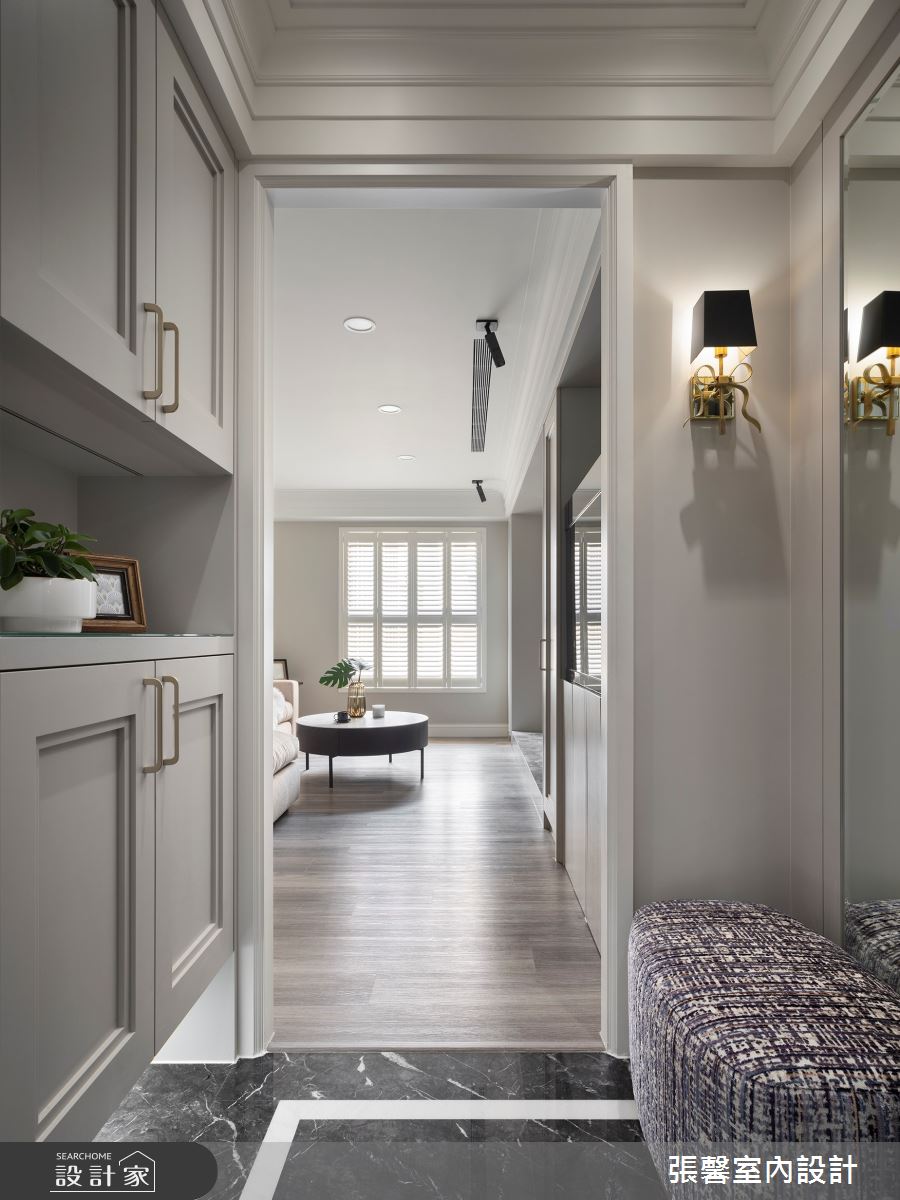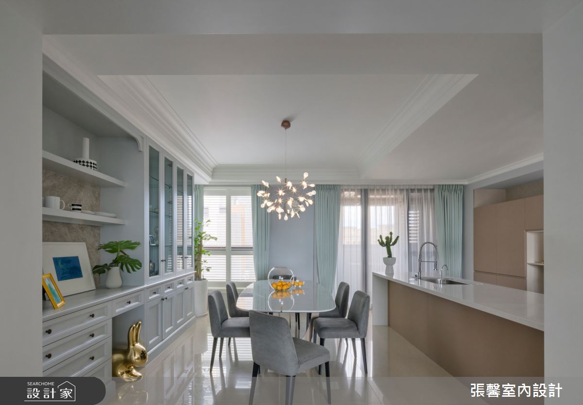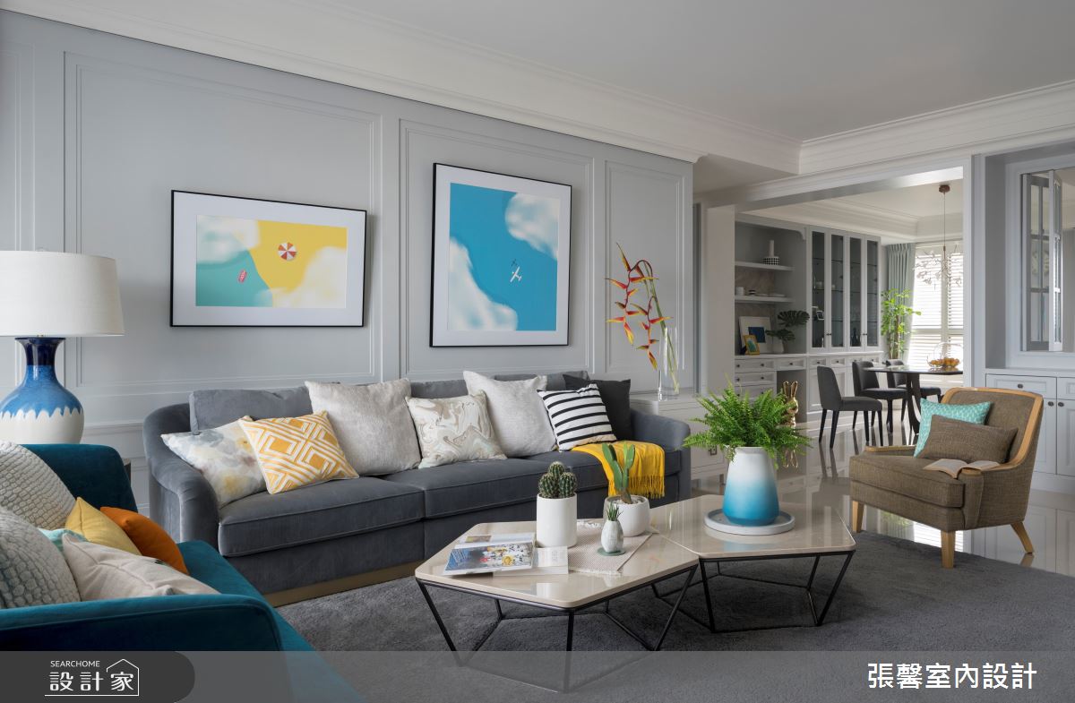 由張馨室內設計精心規劃的55.5坪三房住宅空間,家庭成員一共有2位大人、2位小孩。因應屋主需求,設計師運用美式風作為主軸,搭配油漆、乳膠漆、壁紙、木地板、鐵件、鍍鈦金屬、木作貼皮、系統板材、大理石、磁磚、木百葉、線板、噴漆,打造全家人的夢想家居。