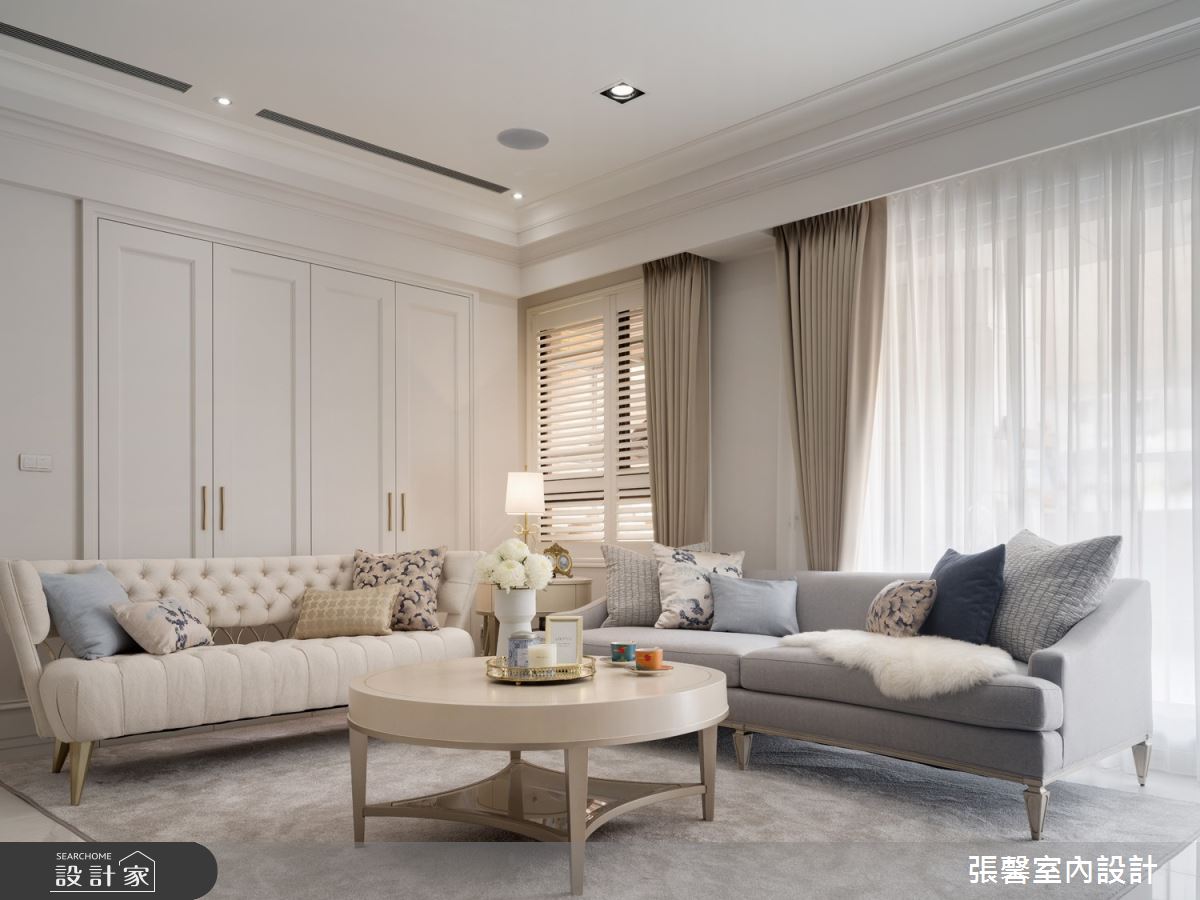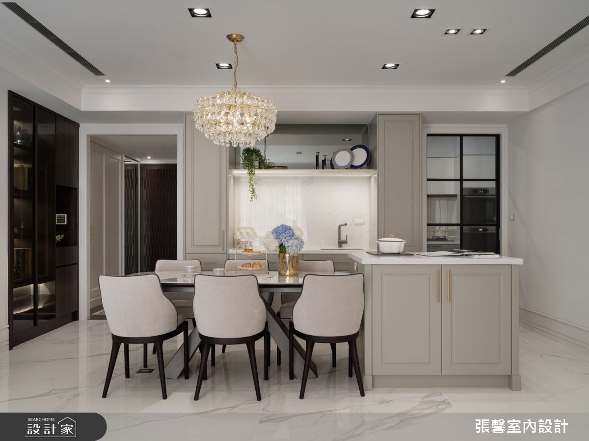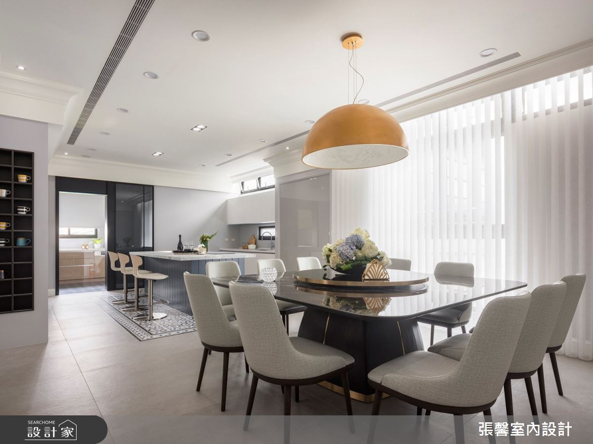 由張馨室內設計精心規劃的55.5坪三房住宅空間,家庭成員一共有2位大人、2位小孩。因應屋主需求,設計師運用美式風作為主軸,搭配油漆、乳膠漆、壁紙、木地板、鐵件、鍍鈦金屬、木作貼皮、系統板材、大理石、磁磚、木百葉、線板、噴漆,打造全家人的夢想家居。