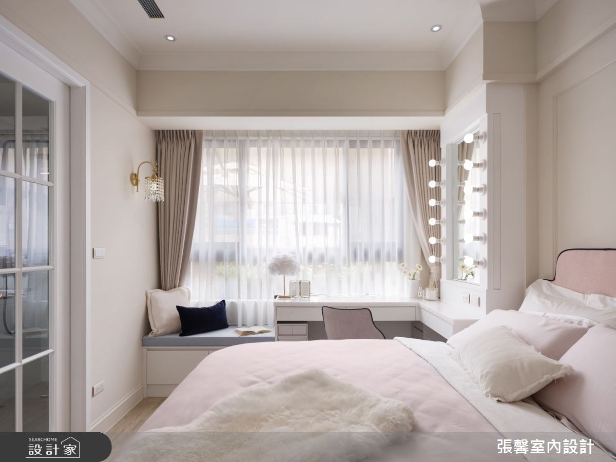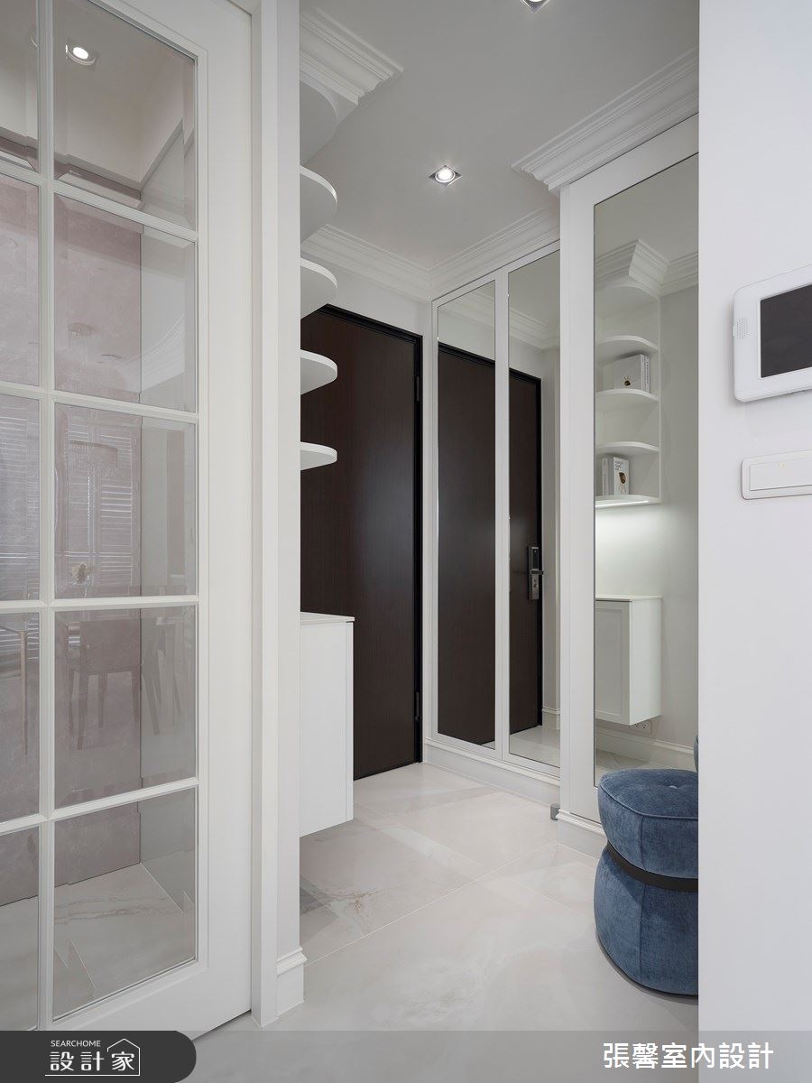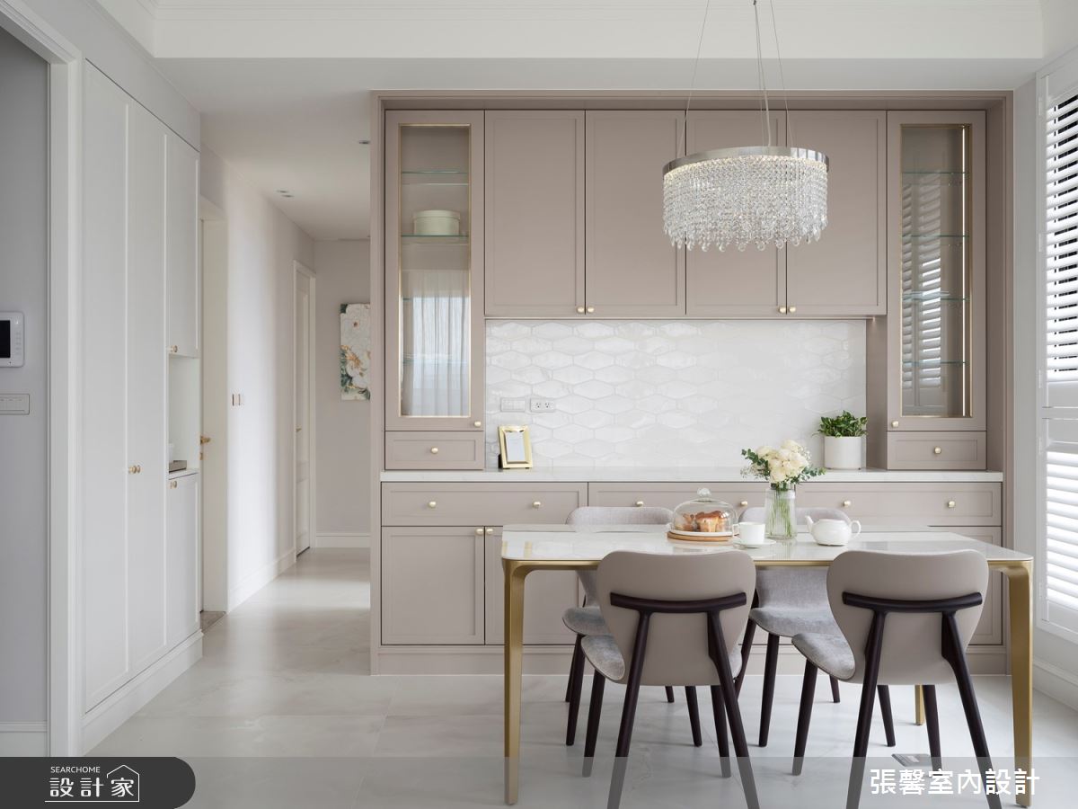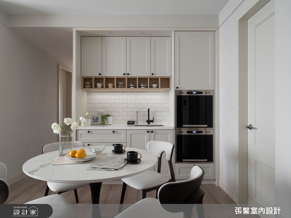 由張馨室內設計精心規劃的28坪三房住宅空間,家庭成員一共有2位大人。因應屋主需求,設計師運用美式風作為主軸,搭配油漆、乳膠漆、花磚、木地板、鐵件、鍍鈦金屬、木作貼皮、系統板材、磁磚、人造石、線板、噴漆,打造全家人的夢想家居。