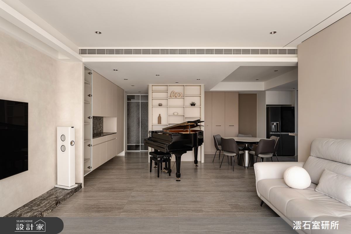 由澐石室研所精心規劃的32坪四房住宅空間,家庭成員一共有2位大人、1位長輩。因應屋主需求,設計師運用現代風作為主軸,搭配油漆、超耐磨木地板、不鏽鋼、磁磚,打造全家人的夢想家居。