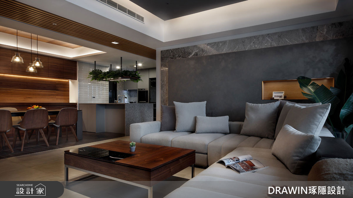 DRAWIN琢隱設計呈現現代風居家氛圍,將此間40坪、三房、單層、新成屋(5年以下)打造成舒適愜意的家庭空間,完成2位大人、2位小孩全家人的夢想之居。