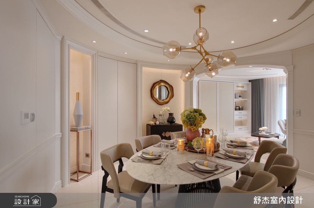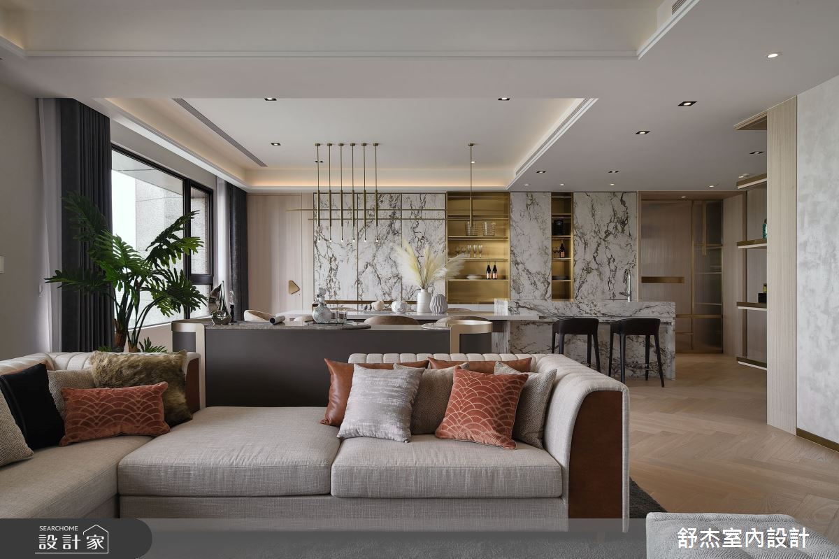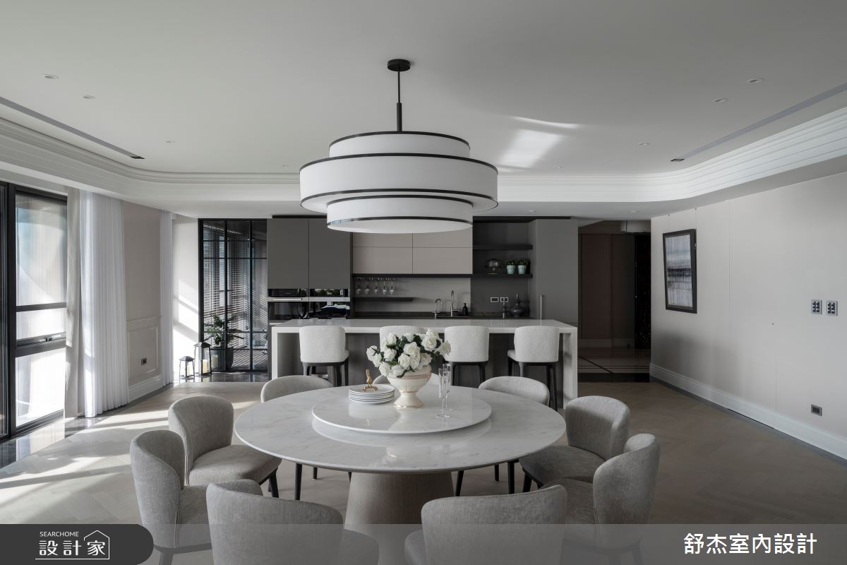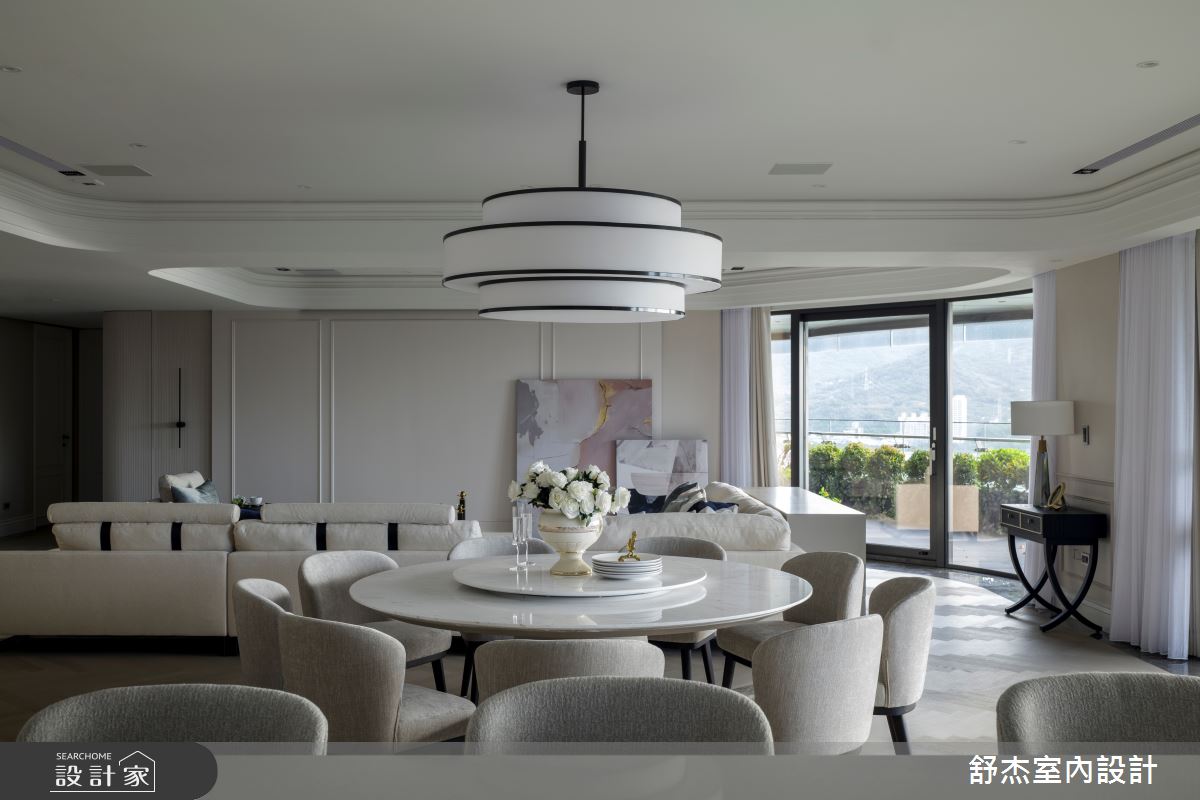 由舒杰室內設計精心規劃的66坪三房住宅空間。因應屋主需求,設計師運用新古典作為主軸,搭配鍍鈦金屬、皮革、石材、噴漆,打造全家人的夢想家居。