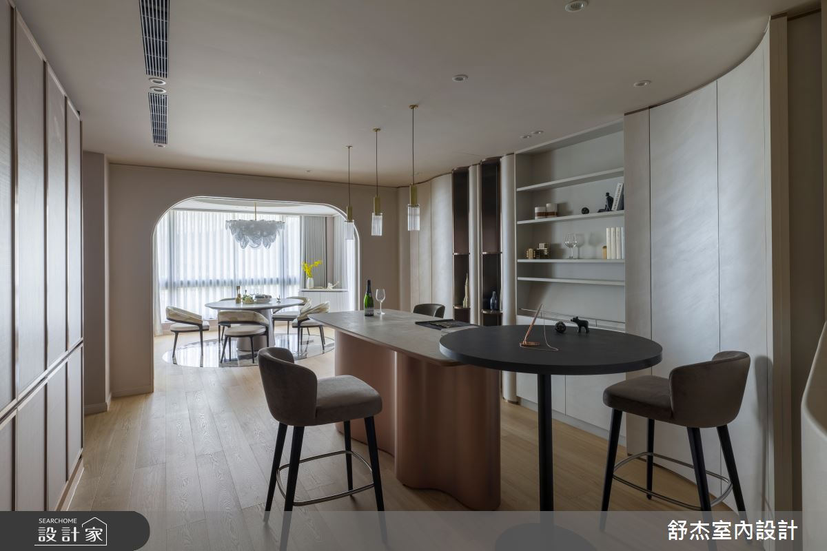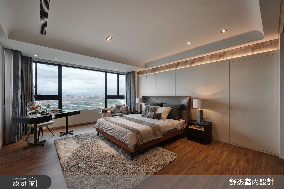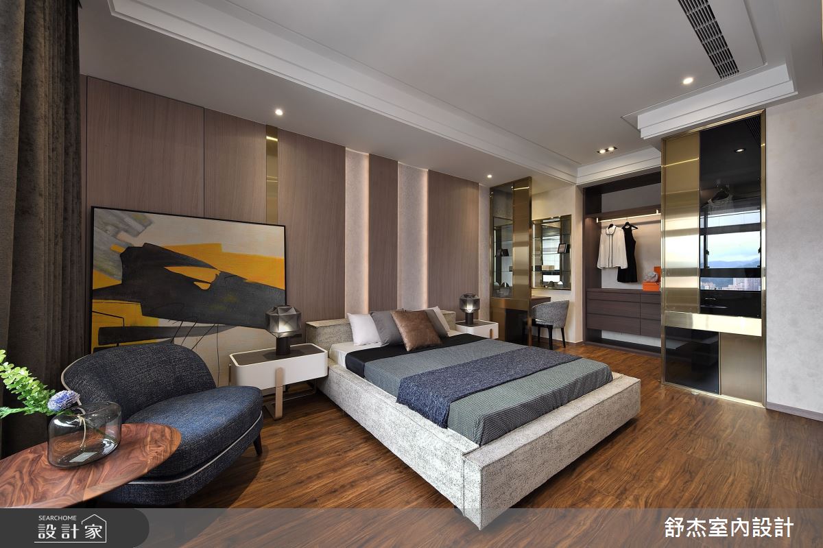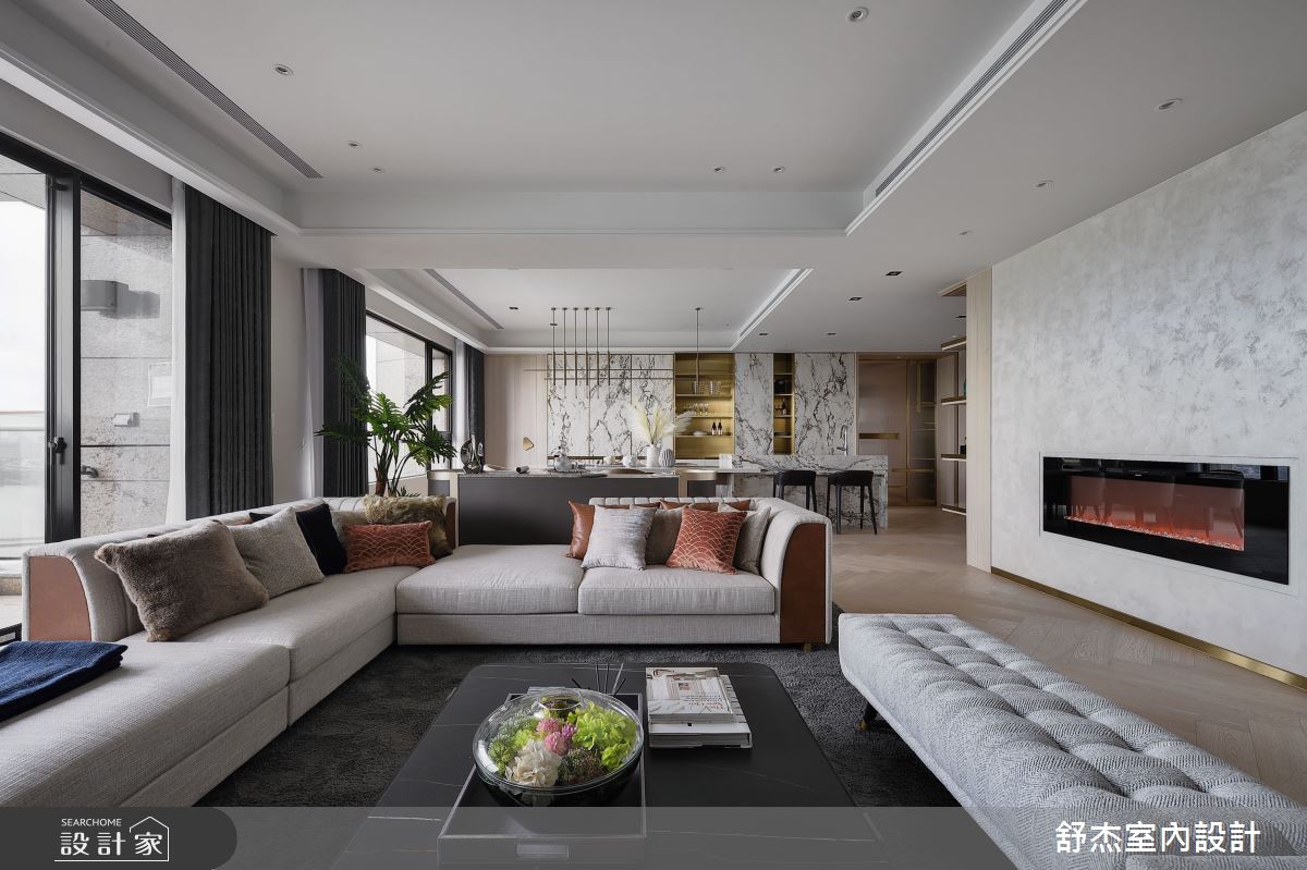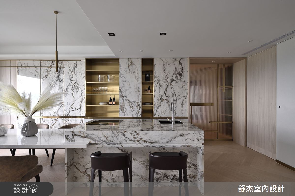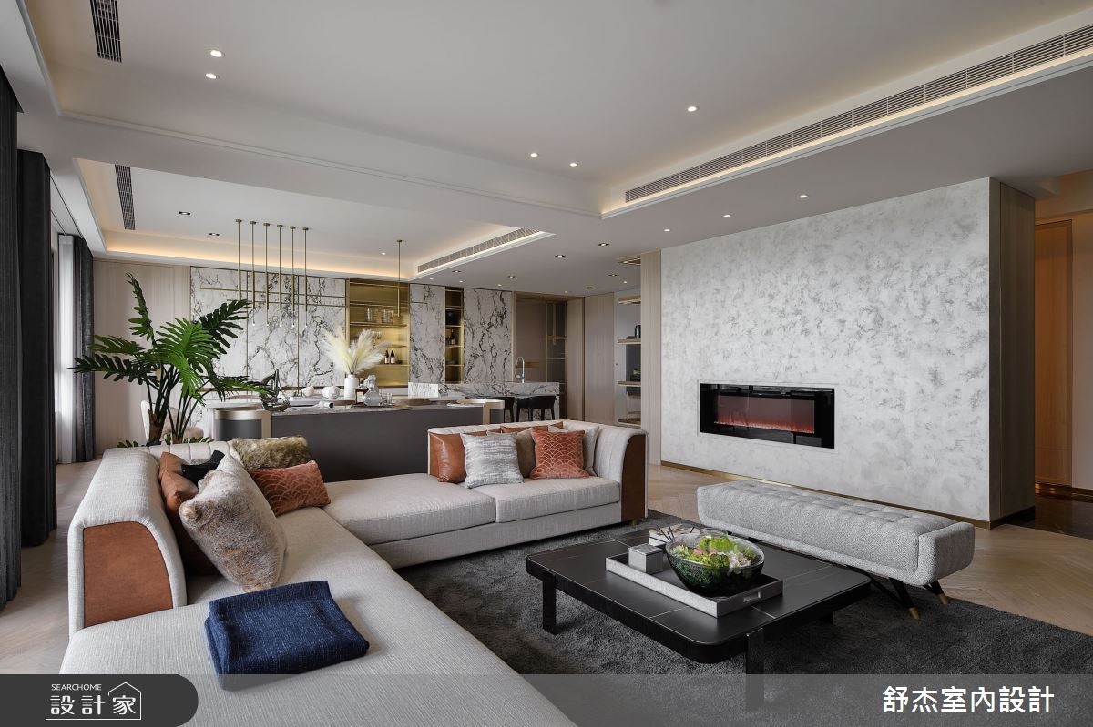 來自舒杰室內設計的142坪現代風住宅案,是一間單層新成屋(5年以下)的四房格局,設計師藉由建材以鐵件、鍍鈦金屬、大理石、皮革、石材、噴漆的搭配應用,實現一家人的理想生活。