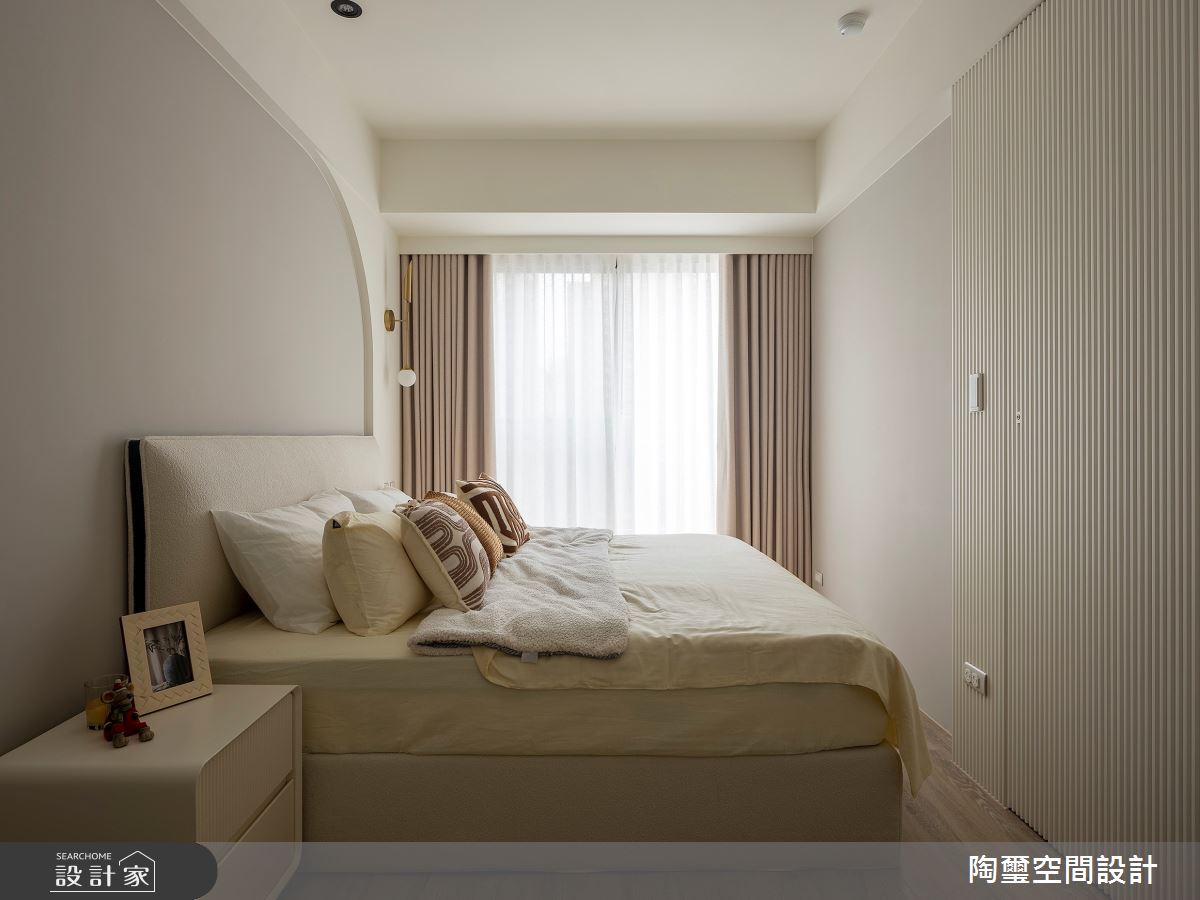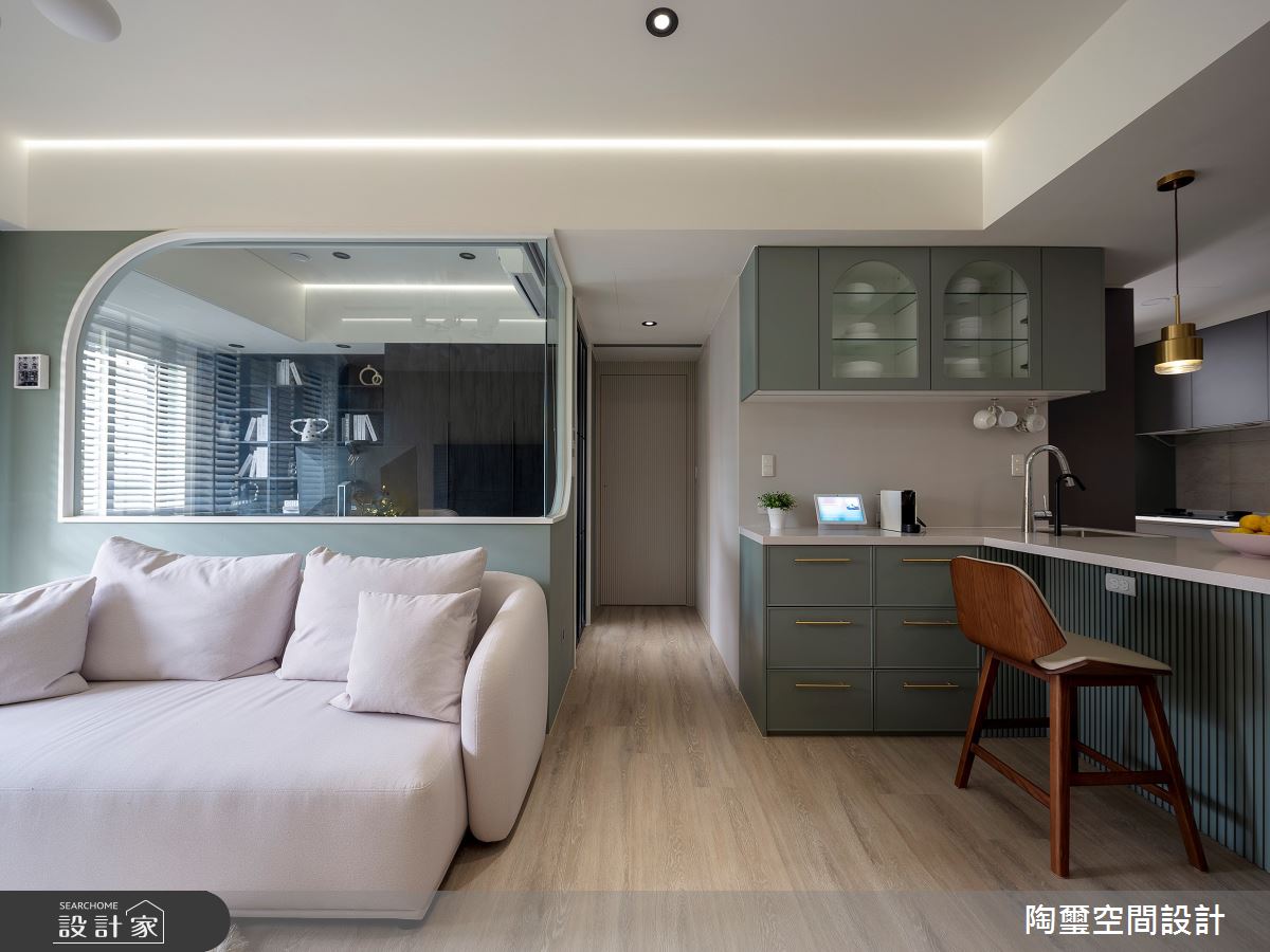 陶璽空間設計以木工、系統櫃、進口磁磚、Dulux乳膠漆、大理石、木百葉窗的搭配應用,呈現混搭風居家氛圍,將此間25坪、兩房、單層、預售屋打造成舒適愜意的家庭空間,完成2位大人、1位小孩全家人的夢想之居。