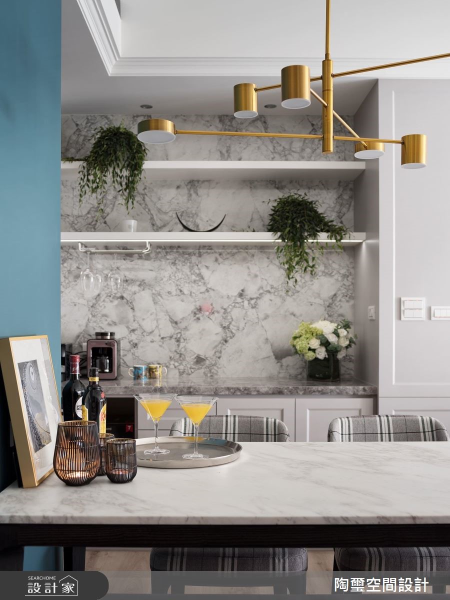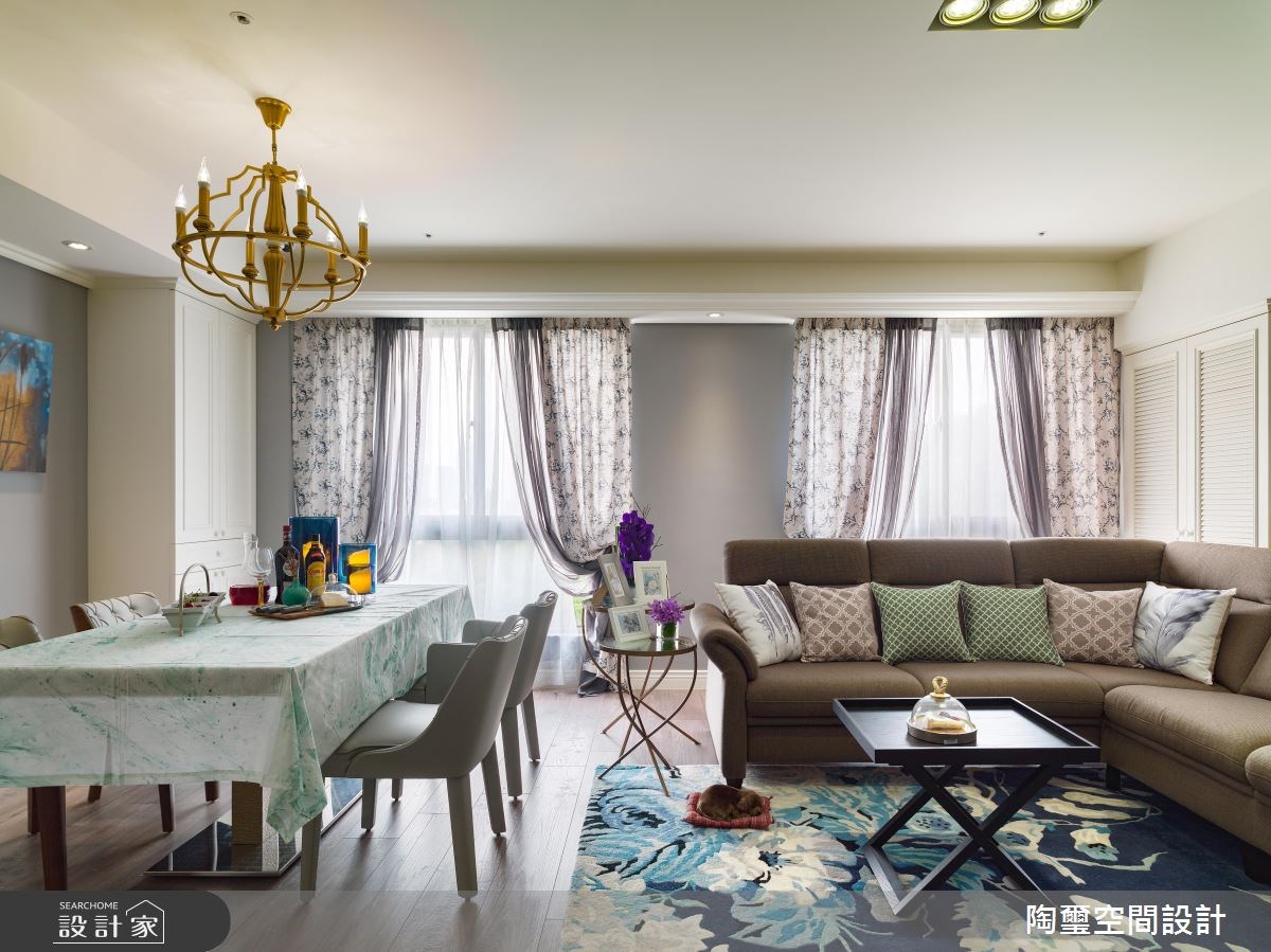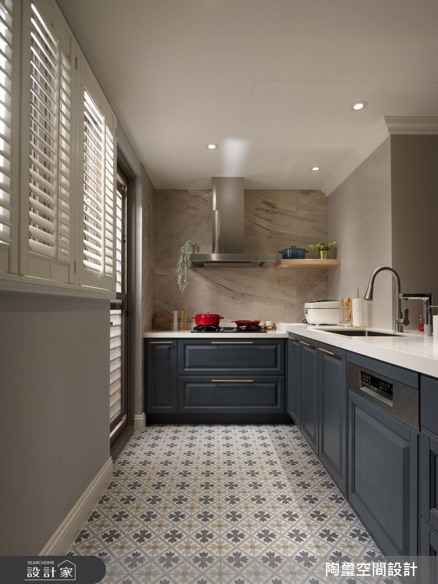 來自陶璽空間設計的35坪美式風住宅案,屋主一家人共有2位大人、1位小孩,是一間單層新成屋(5年以下)的三房格局,設計師藉由建材以進口花磚、大理石、超耐磨木地板、木百葉窗、系統櫃的搭配應用,實現一家人的理想生活。