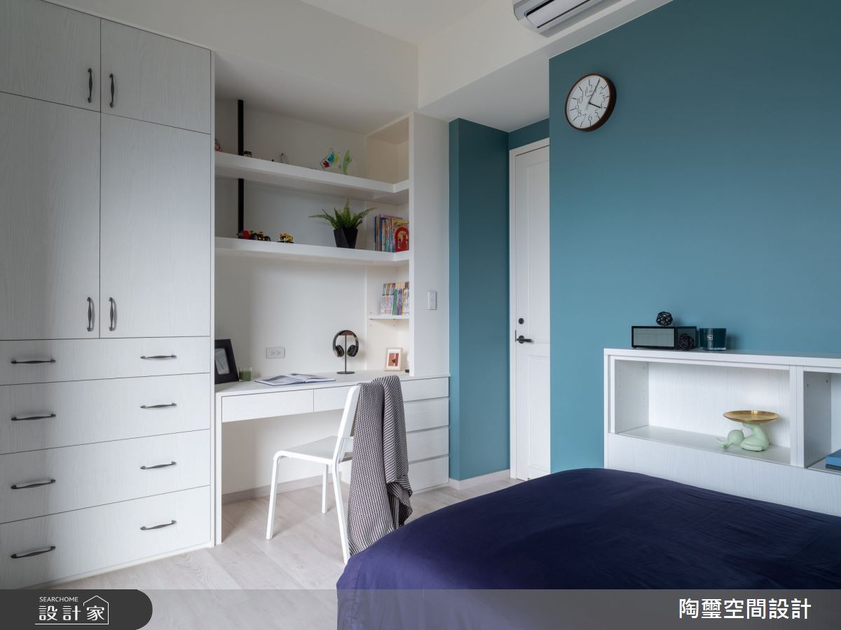 35 坪小家庭住宅,設計師大刀破斧重整格局,不只解決入門狹隘問題,也讓陽光更能照亮每個角落,延伸至餐廳、客廳與廚房,並運用機能、色彩與風格元素加以混搭,為居家帶來更明亮舒適的優質視野,快跟著小編一起來看看吧! 設計師首先將一進門的兩房剃除,規劃成開放式公領域,促成陽光的自由流動,並以窗面導入戶外寬闊景致,形成通透無壓的空間感,全室採以輕柔白色為底,搭配軟件的深邃藍色、局部牆面的淡雅灰色,帶來跳色的活潑氛圍,同時給予大量線板修飾,彰顯美式底蘊與輕古典風格;電視主牆兩側加入茶鏡及玻璃,隱飾掉通往客浴及廚房的入口,並讓窗景得以反射,使空間尺度獲得延伸;且調整原本廚房位置,與餐廳形成流暢動線,內部透過磚面、烤漆呈現黑白對比,俐落且清爽;主臥內,於床頭掛上多彩畫作,彰顯個人風格,並講究收納機能,特別依照男女主人的不同需求,個別給予兩間專屬更衣室,以及安置櫃體滿足收納,兼具美感與實用性! 小編的最愛 小孩房,結合了遊戲室機能,給予上下鋪規劃,並保留活動空間,集嬉戲、休憩與安全性於一體,體現生活中的寓教於樂!