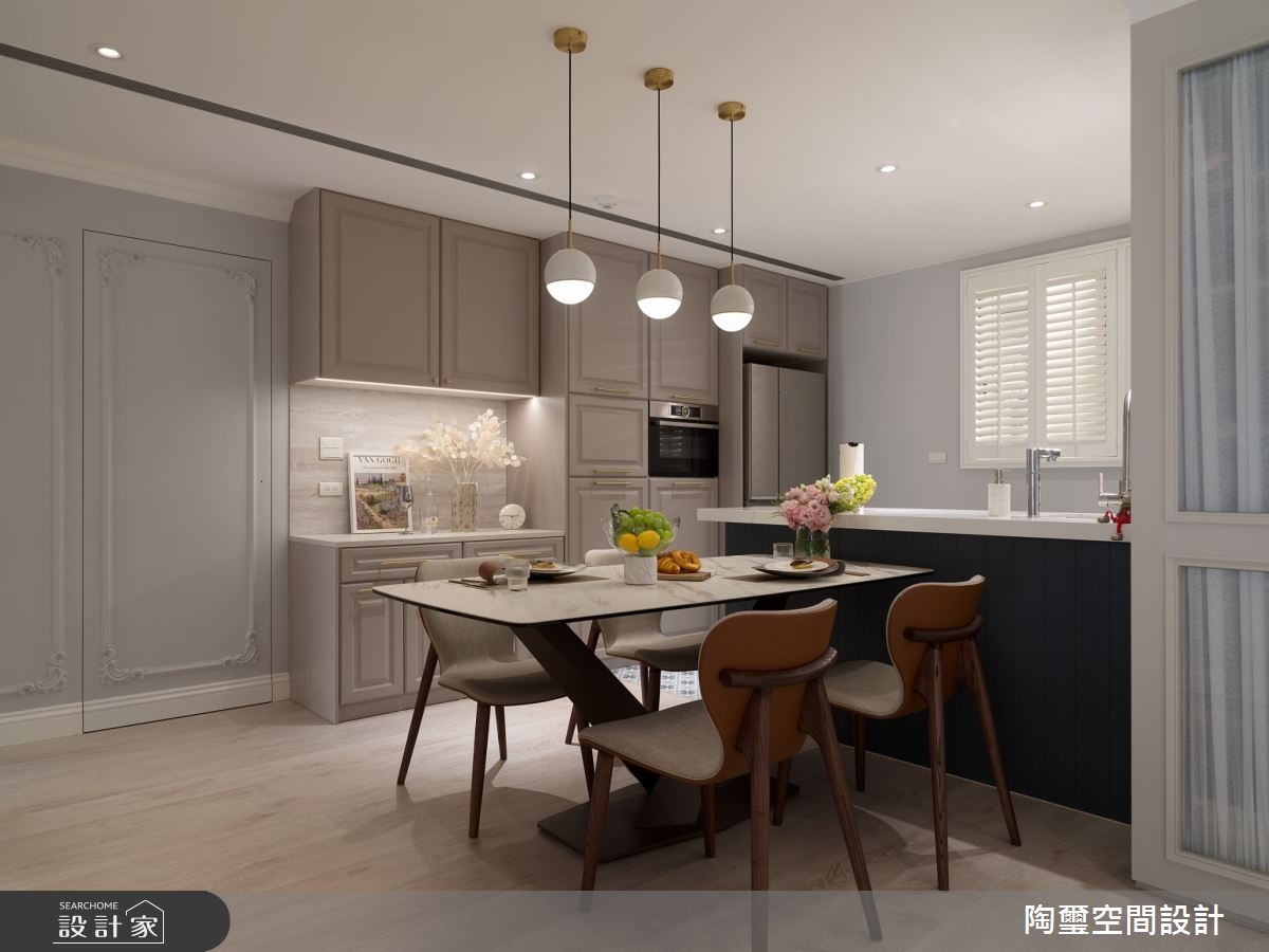 由陶璽空間設計精心規劃的40坪三房住宅空間,家庭成員一共有2位大人、3位小孩。因應屋主需求,設計師運用新古典作為主軸,搭配超耐磨木地板、大理石、木百葉、系統櫃、進口磁磚、Dulux乳膠漆,打造全家人的夢想家居。
