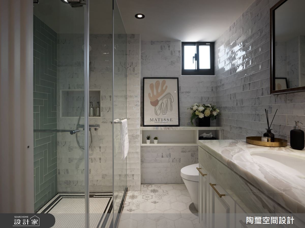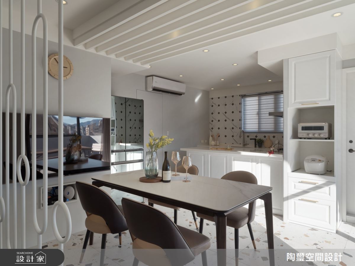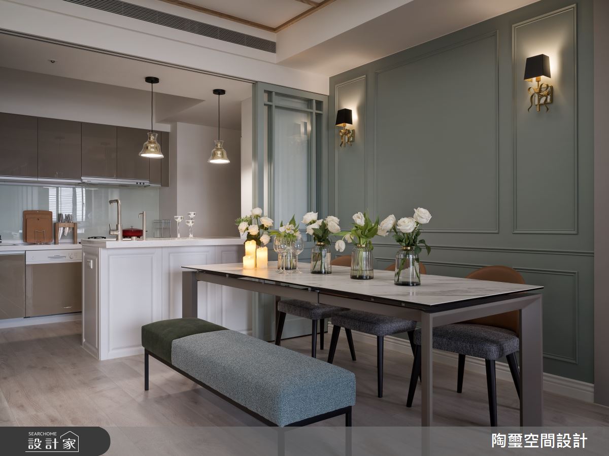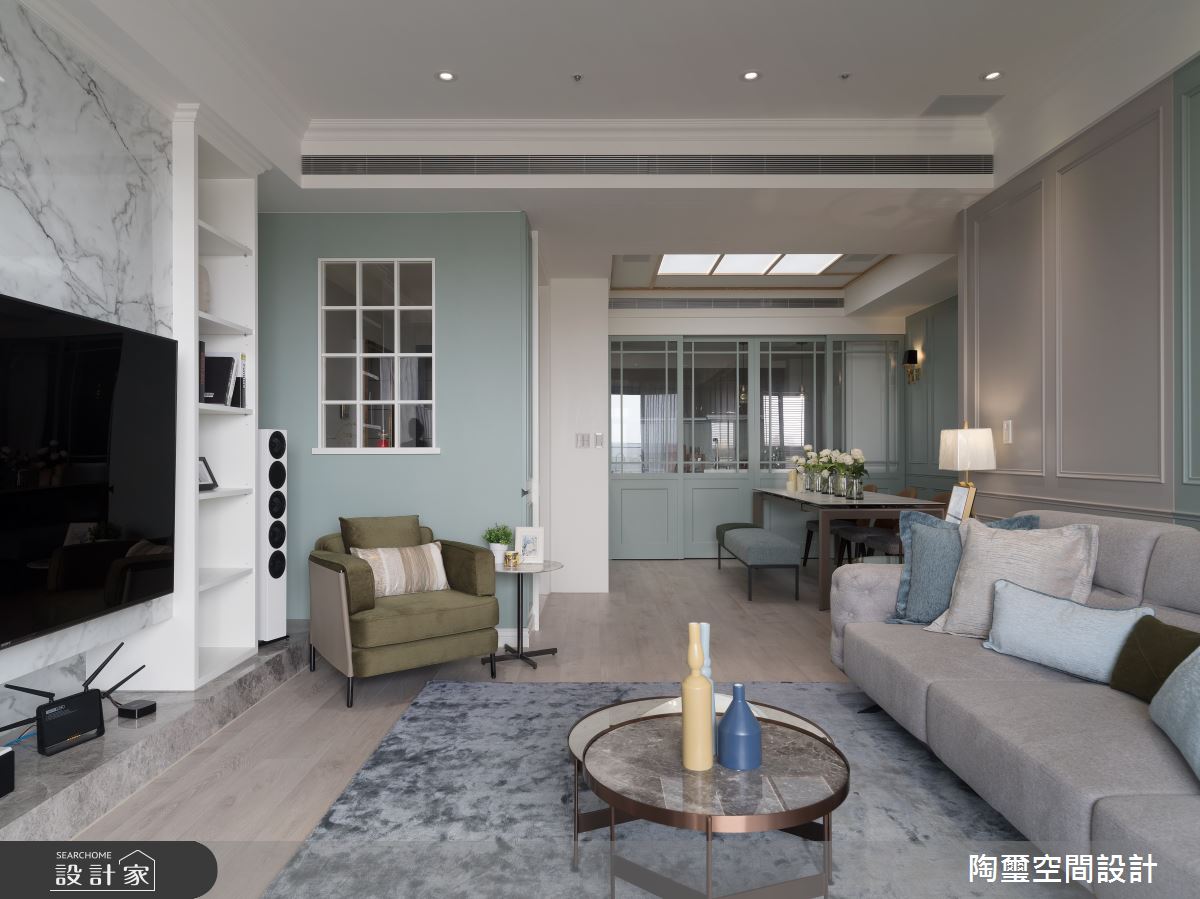 由陶璽空間設計精心規劃的36坪四房住宅空間,家庭成員一共有2位大人、2位小孩。因應屋主需求,設計師運用美式風作為主軸,搭配乳膠漆、鐵道磚、花磚、超耐磨木地板、灰鏡、木作貼皮、烤漆、系統板材、大理石、磁磚、水泥/水泥粉光、賽麗石、石材、線板、噴漆,打造全家人的夢想家居。