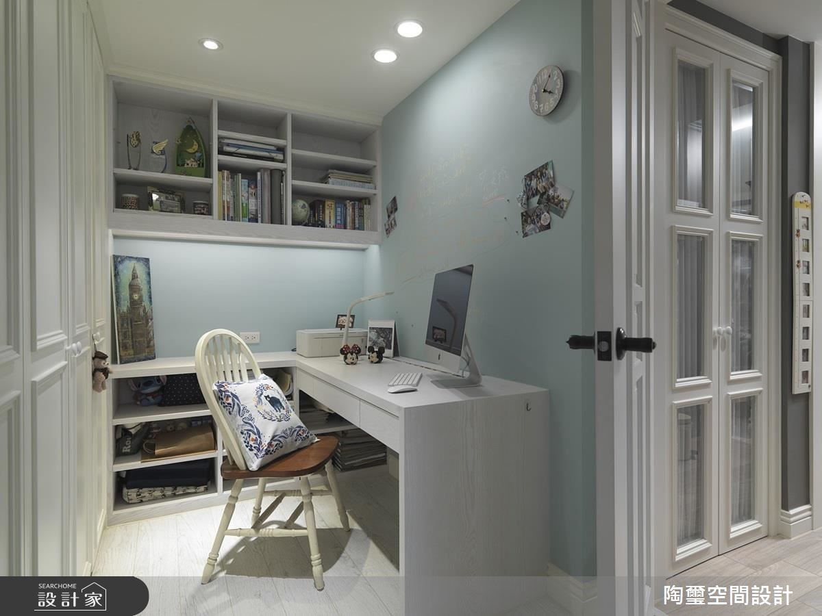 旋開大門,走進這個21坪的浪漫美式風宅邸,入室的第一眼忍不住望向窗外陽台,延伸向外的視野,將都市建築與山林景緻盡收眼底,落地窗也同時將自然風光引入,與圖騰壁紙、花卉植栽以及優雅線條的家具家飾相融,調和一幅自然、雅致的時髦小宅。 利用玻璃與白色木作界定出玄關與室內領域,順著L形的隔間擺設一張穿鞋椅,讓空間得以充分被利用。公領域裡藉由天花高度與低矮隔間,讓客廳、書房與練琴處相容為一,且領域分明,充沛的自然光灑落一室,烘托美式的元素與動人細節,也映照出展示櫃上的風格物件;電視牆以印花圖騰的壁紙鋪陳,兩側以對稱的歐風窗型打造收納櫃,玻璃櫃面結合窗簾設計,營造柔美的意象同時隱藏櫃內物件,美化空間的視覺感受;室內更創造充足的收納,後方的書房領域以整面的藍色開放櫃,滿足書籍的收納;一旁練琴區的上方也打造收納櫃,平台上則展示風格物件,替居家生活妝點出豐富的人文美學。 小編的最愛 主臥空間裡,藉由粉嫩色系的格紋壁紙鋪敘壁面,兩側以雅致的壁燈妝點,加上自然花卉意象的床單設計,調和溫潤、柔美的休憩環境。