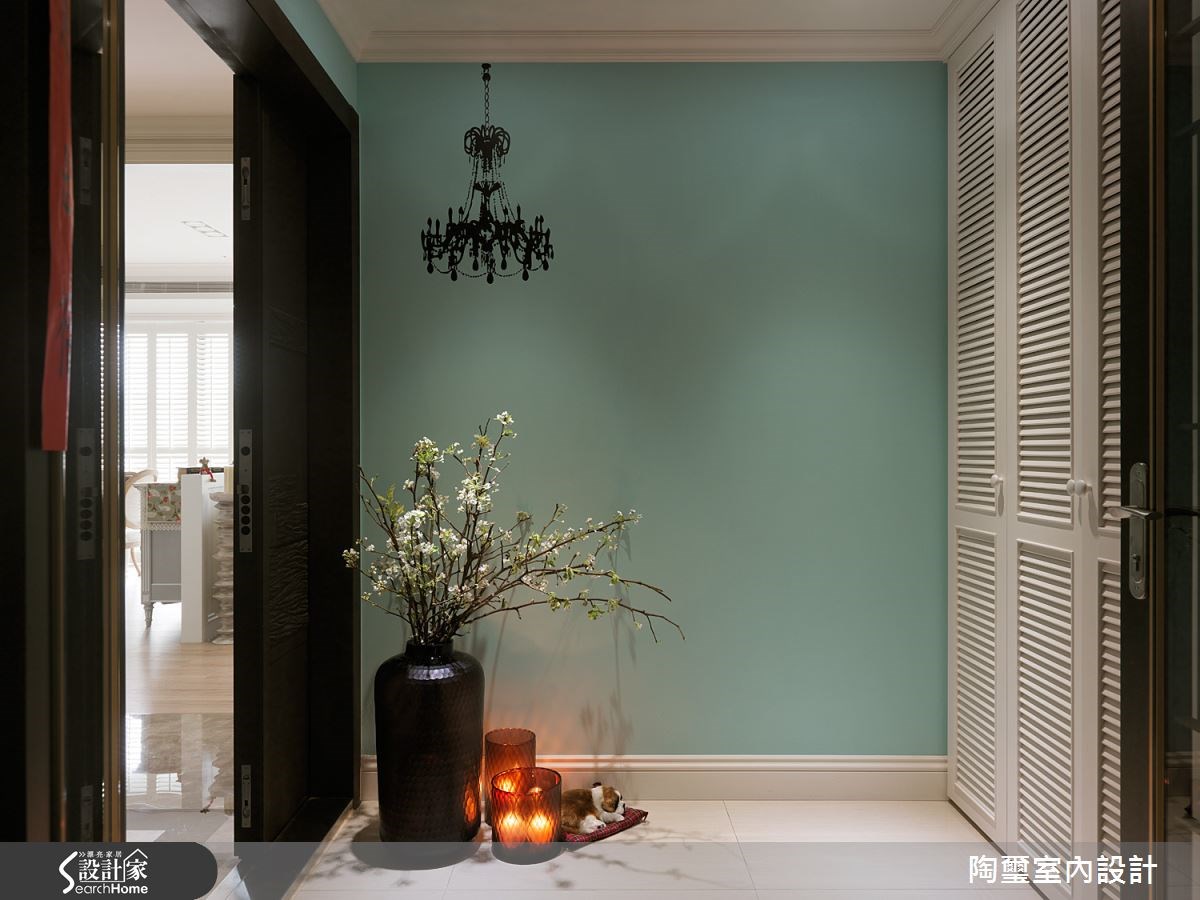 任職於科技產業高階主管的男主人,為給家人完美的生活品質,對於居家空間的需求是優雅中不失大器,且有著明亮通透的動線設計,設計師以淡雅典麗的新古典為主軸,並佐以環保綠建材,為一家四口開展甜蜜好生活。 原先玄關動線不佳,設計師稍加修飾,利用茶鏡與柔和的大理石拼花,打造唯美的第一印象,另外更匠心獨運,將茶鏡作為儲藏室門片,除了完美抹除既有的收納印象,更使動線穿透感十足。設計師保有房屋既有採光優勢,讓客廳在大面積日照下顯得生氣蓬勃,搭配色調輕淺的軟件佈置與精緻的造型線板,透露了細節品味,而帶著隱隱金光的大理石電視牆面,則注入了成熟穩重的氣息。設計師將壁爐設置在通往後方場域的過道上,線板與文化石的結合成為彷彿道地美式莊園的視覺端景。 客廳後方利用可推拉清玻門片,隨心所欲的與後方餐廚空間及書房產生互動,達成通透居家的第二步。用餐區域柔美的薰衣草色調與碎花壁紙,為新古典風格注入清新繽紛的活潑感,在上方天花穿透而下的方格造型照明下,有著特色不失方正的格調。主臥門片上的線板造型延伸至壁面與踢腳板,達成綿延連貫的美感,牆面上的大面積粉金色壁紙,與房內色調淡雅的家具及櫃體相當匹配。 小編的最愛 設計師善用色彩搭配,將雍容典雅的新古典風格注入清新甜美的淡雅色調,更為家人選用環保水性漆、環保木器等塗料,為居家空間開創舒適健康的開放空間。