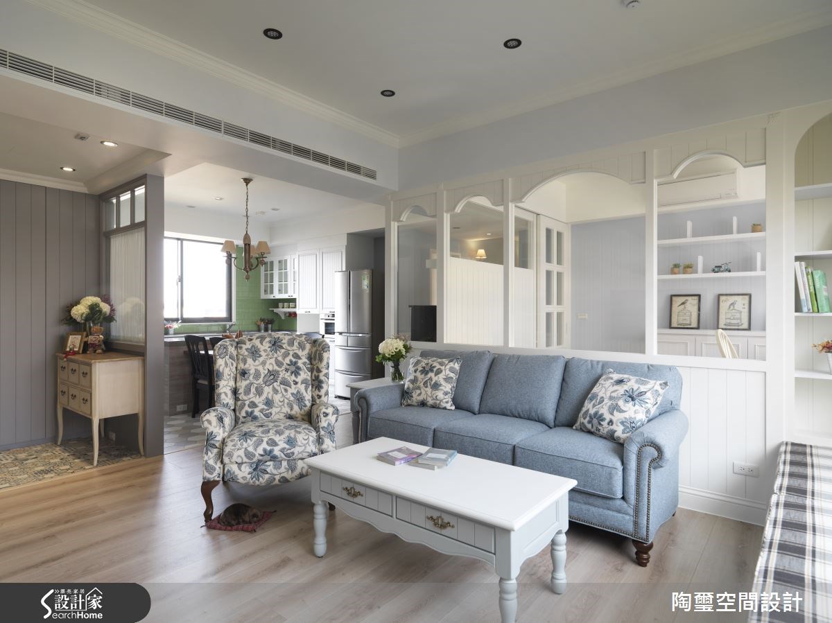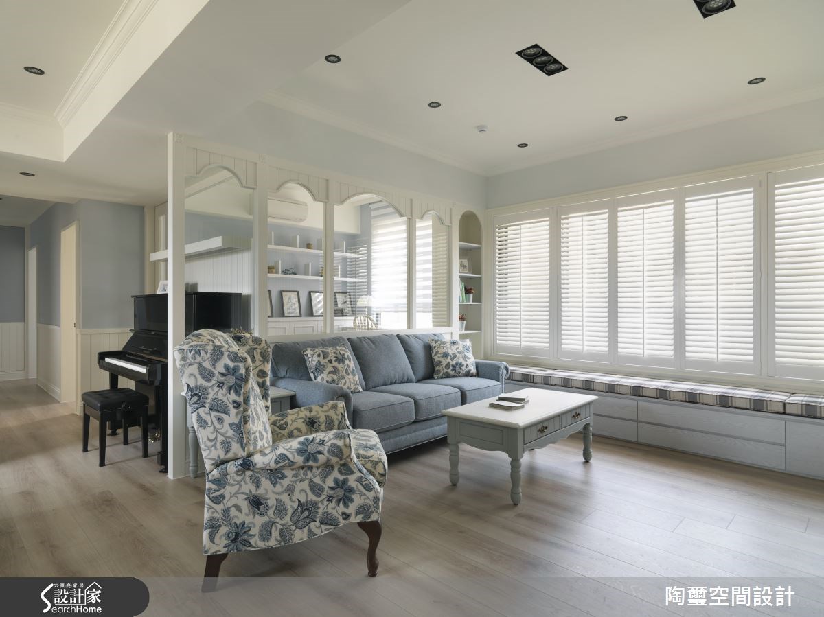 每天早晨,打開美式純白百葉窗,迎向溫煦陽光,彷彿化身為美劇中的女主角,加上夢幻感的水藍色調,與細緻典雅的圓拱線條,為位於新竹市北區的 35 坪新成屋營造清新脫俗的美式風貌,打造出令人沉迷陶醉的優雅系居家。 進門處佇立一道屏風,地面鋪上雅緻的復古花磚,設計師將格局微調,創造出迷人的玄關風景,公共領域則採用開放式格局串連客廳及餐廚,穿透式書房放大整體視感,讓從純白百葉窗迎入充裕日光,更能恣意在室內流動,創造出清透明亮的光感氛圍。擁有流暢動線的廚房結合中島區,不論備料或是下廚料理都相當方便,而牆面貼上蘋果綠色磁磚,搭配純白色的收納櫃體,更顯清新可愛。來到臥室區,恬淡溫雅的色調為睡眠空間渲染溫柔個性,並利用線板隱藏收納區的存在感,開放式層架上擺入心愛的玩偶及小物,增添生活中的開心童趣。 小編的最愛 臥榻區安排在採光良好的百葉窗旁,輸入悠閒自在的浪漫質感,另外當來訪親友人數較多時立刻就能成為臨時座位,下方也賦予收納空間,多重的機能性真的非常實用呢!