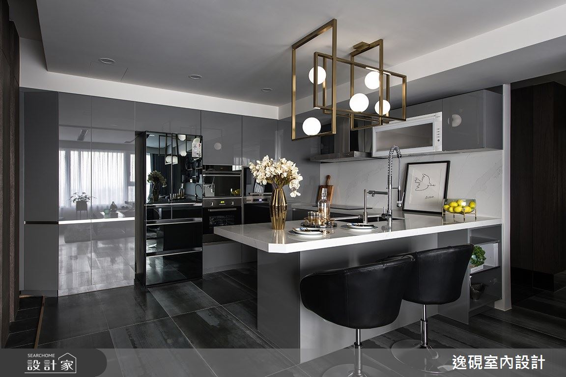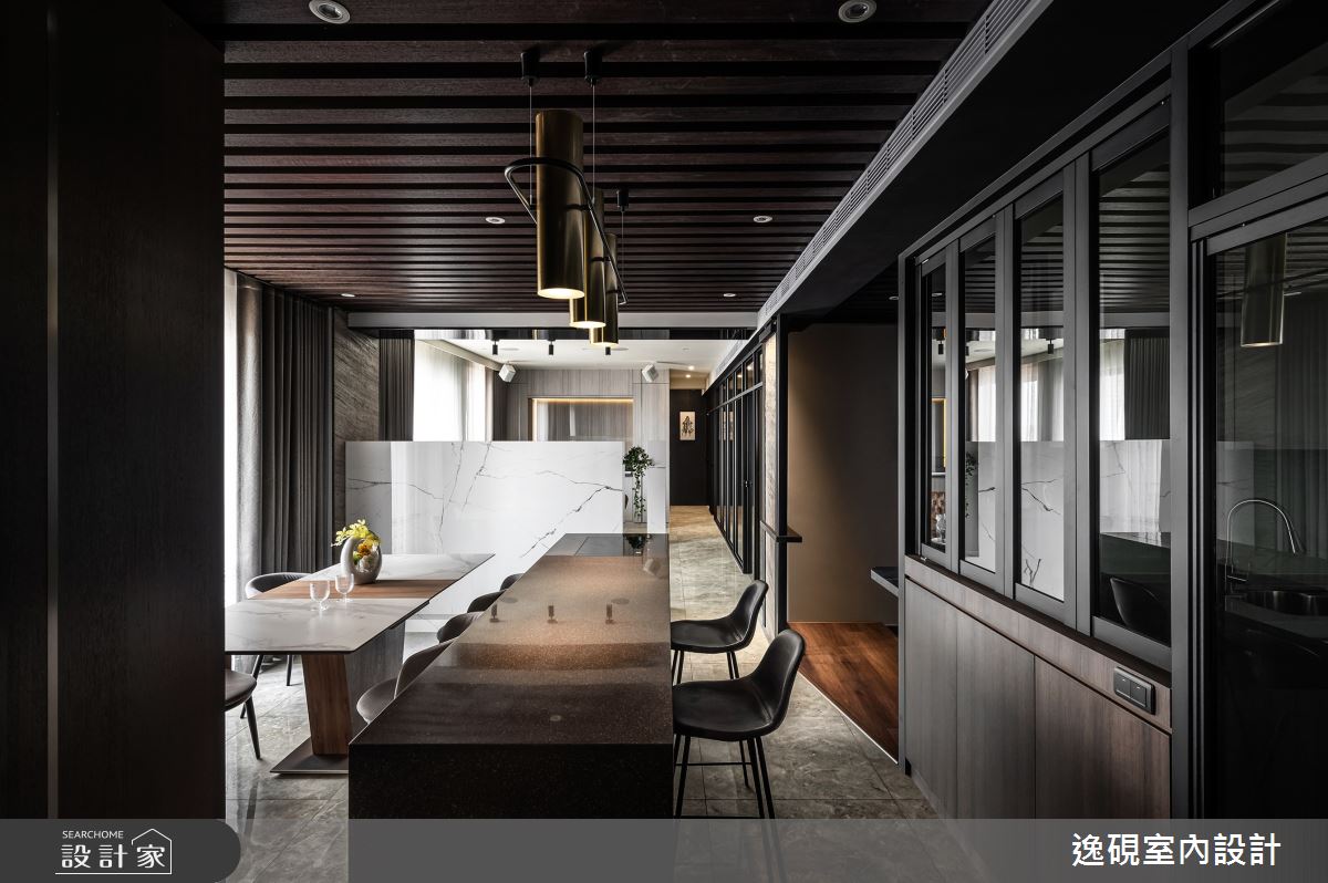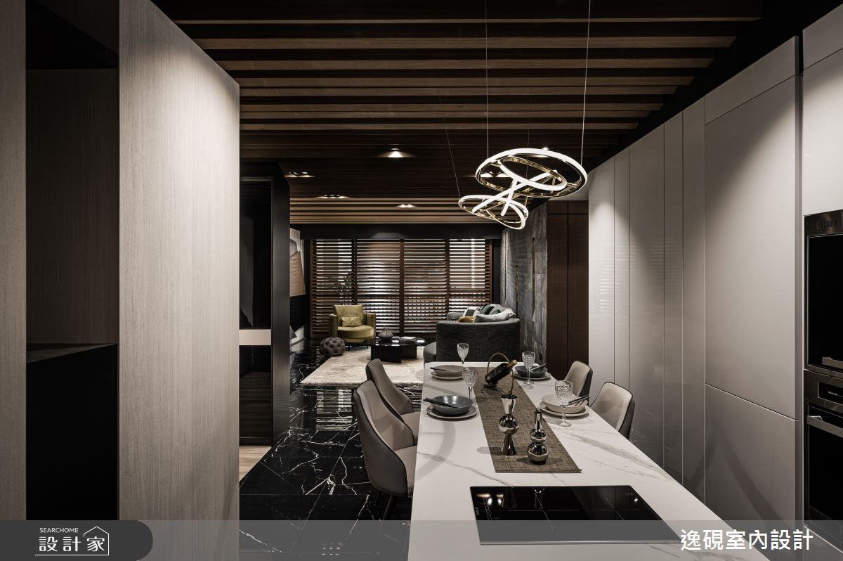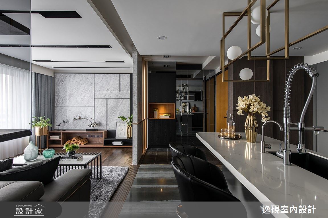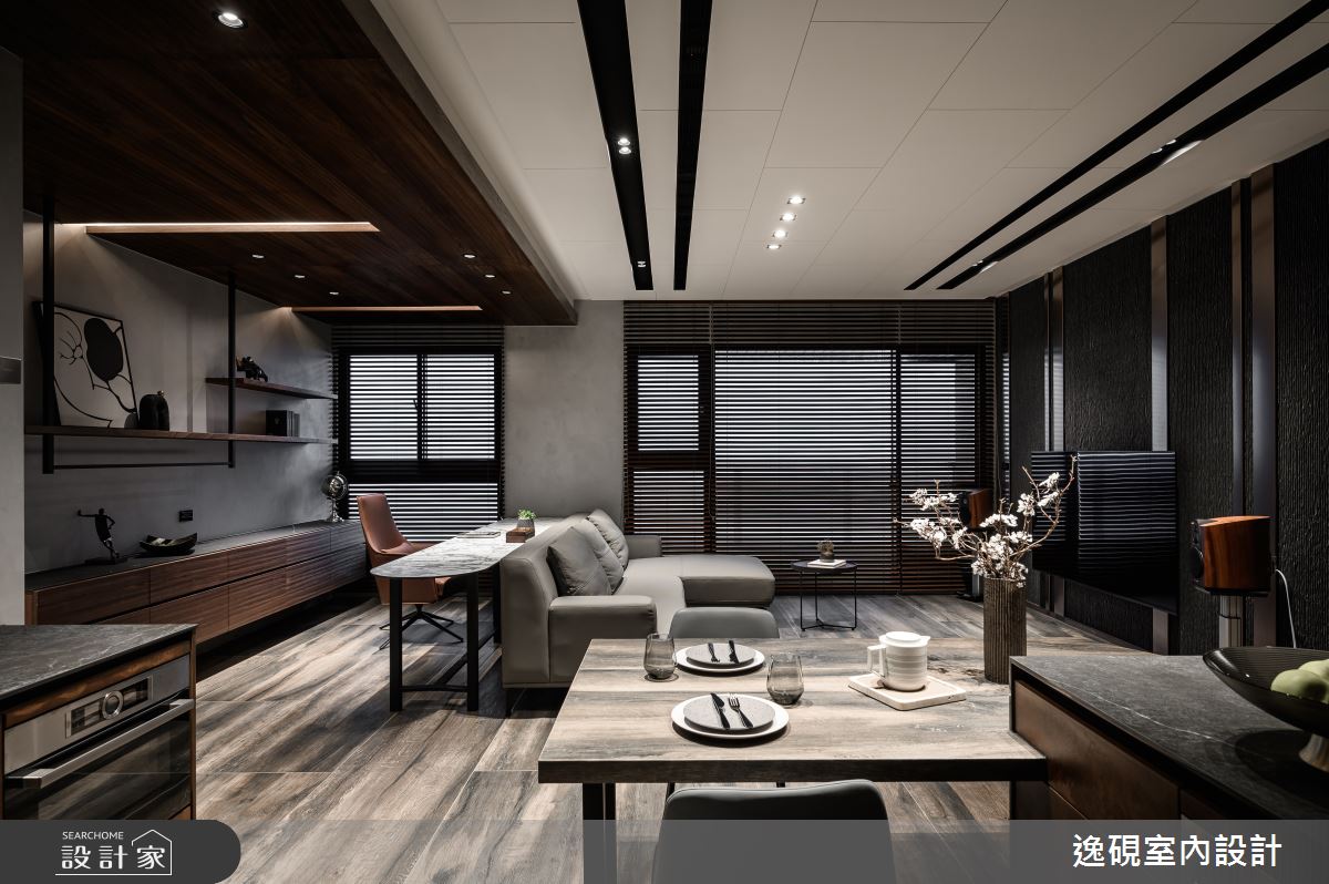 由逸硯室內設計精心規劃的45坪六房住宅空間。因應屋主需求,設計師運用現代風作為主軸,搭配KD實木皮、進口薄磚、進口大理石地磚、金屬鍍鈦板,打造全家人的夢想家居。